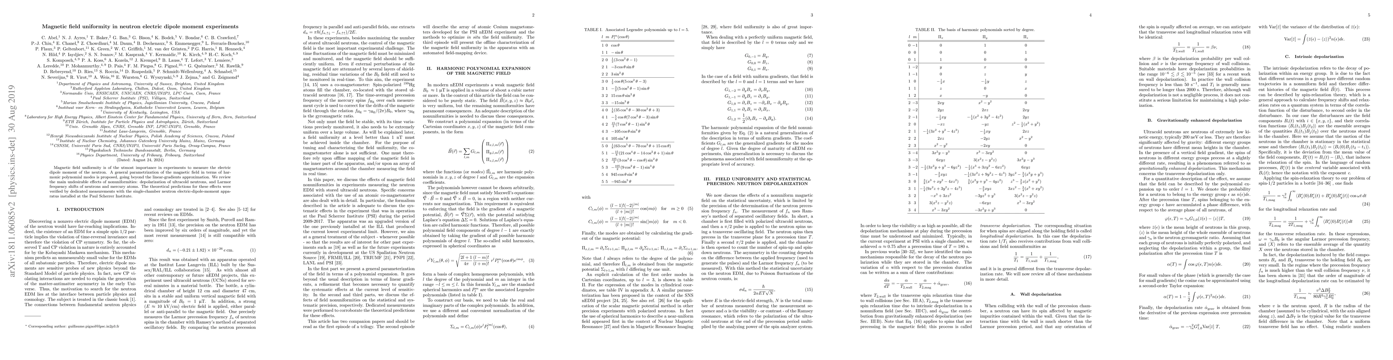 This paper proposes a comprehensive parametrization for magnetic field uniformity in neutron electric dipole moment experiments, addressing non-uniformities beyond linear gradients. Dedicated measurements with the nEDM apparatus confirmed theoretical predictions of depolarization and frequency shifts caused by magnetic field non-uniformities.