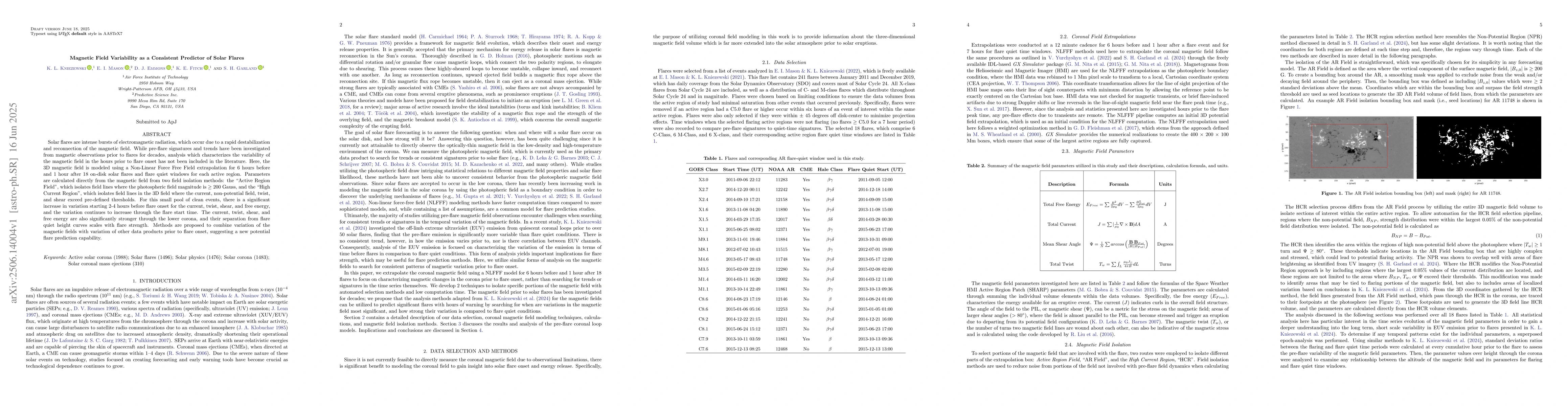 Solar flares are intense bursts of electromagnetic radiation, which occur due to a rapid destabilization and reconnection of the magnetic field. While pre-flare signatures and trends have been investigated from magnetic observations prior to flares for decades, analysis which characterizes the variability of the magnetic field in the hours prior to flare onset has not been included in the literature. Here, the 3D magnetic field is modeled using a Non-Linear Force Free Field extrapolation for 6 hours before and 1 hour after 18 on-disk solar flares and flare quiet windows for each active region. Parameters are calculated directly from the magnetic field from two field isolation methods: the "Active Region Field", which isolates field lines where the photospheric field magnitude is $\geq$ 200 Gauss, and the "High Current Region", which isolates field lines in the 3D field where the current, non-potential field, twist, and shear exceed pre-defined thresholds. For this small pool of clean events, there is a significant increase in variation starting 2-4 hours before flare onset for the current, twist, shear, and free energy, and the variation continues to increase through the flare start time. The current, twist, shear, and free energy are also significantly stronger through the lower corona, and their separation from flare quiet height curves scales with flare strength. Methods are proposed to combine variation of the magnetic fields with variation of other data products prior to flare onset, suggesting a new potential flare prediction capability.