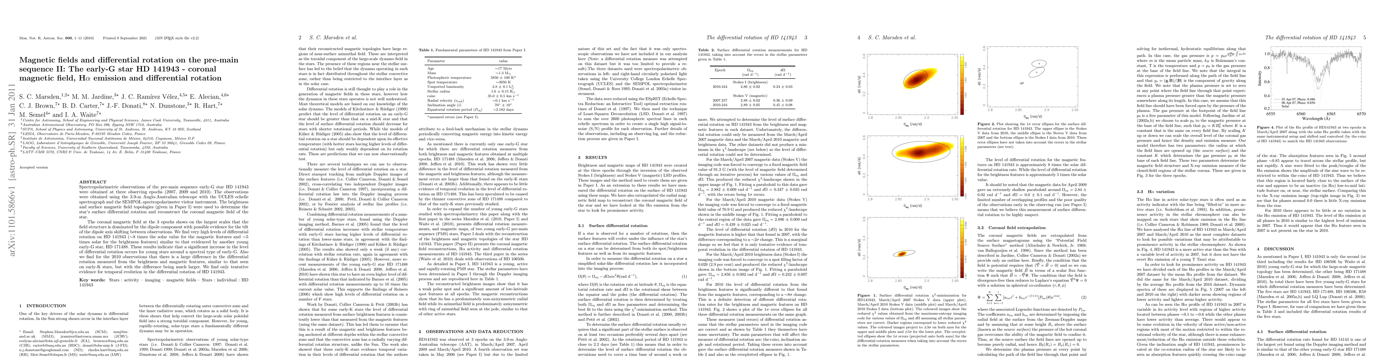 This study uses spectropolarimetric observations of the pre-main sequence star HD 141943 to determine its surface differential rotation and coronal magnetic field. The findings show high levels of differential rotation, about 8 times solar for magnetic features and 5 times for brightness features, suggesting a significant increase in differential rotation for young early-G stars.