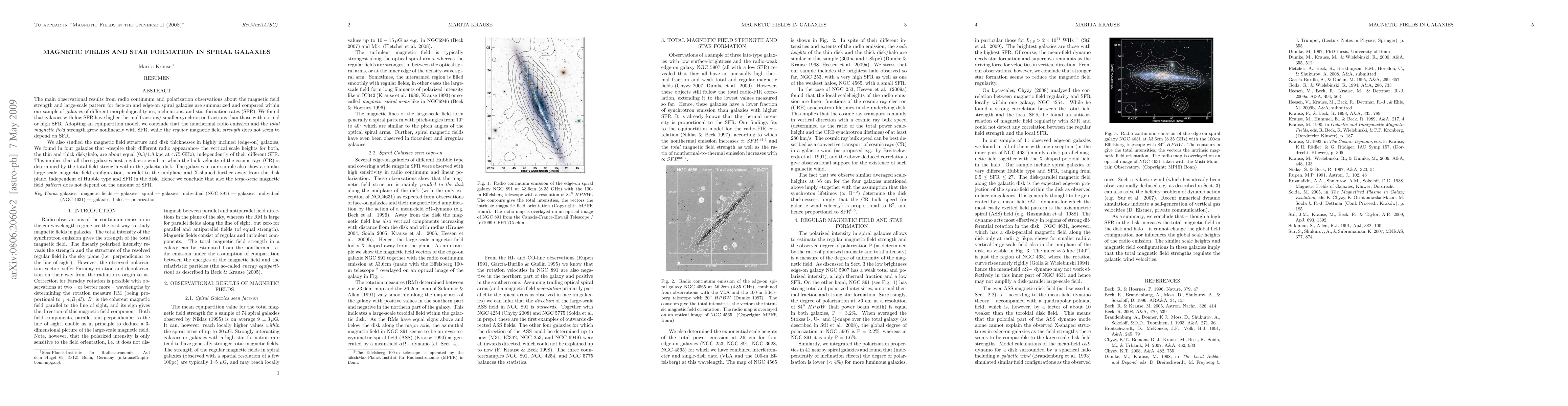 This paper investigates the magnetic field strength and structure in spiral galaxies, finding that nonthermal radio emission and total magnetic field strength grow nonlinearly with star formation rate (SFR), while regular magnetic field strength is independent of SFR. It also reveals that galaxies with varying SFRs share similar vertical magnetic field scale heights, suggesting a common galactic wind mechanism.