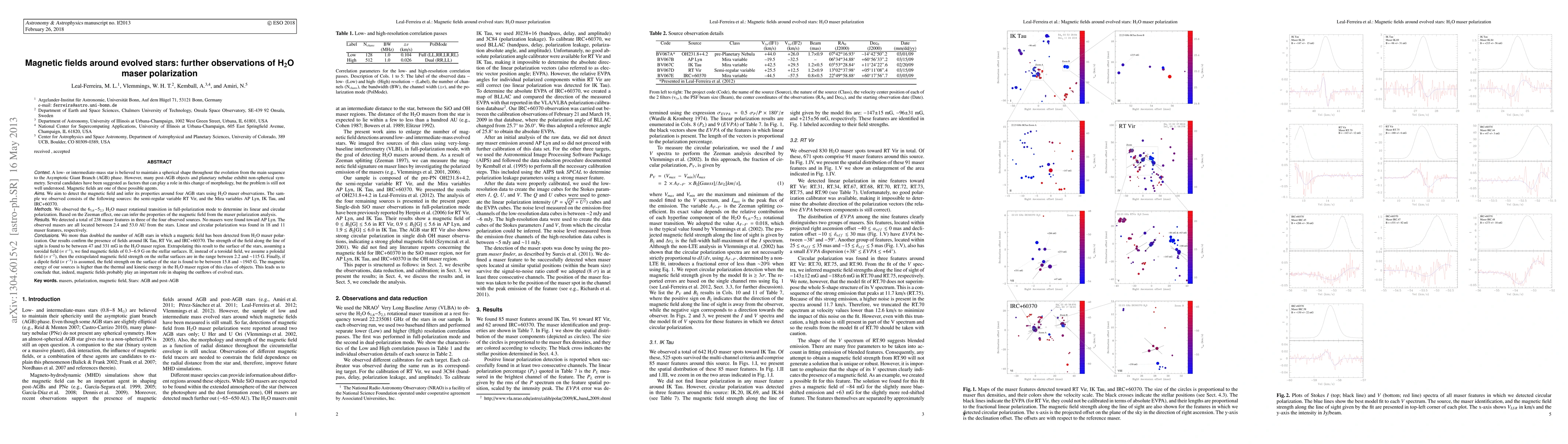 This study detects and analyzes magnetic fields around four evolved AGB stars using H$_2$O maser polarization, confirming the presence of magnetic fields in three of them. The magnetic field strength on the stellar surfaces ranges from 0.3-6.9 G for a toroidal field to 15.8-1945 G for a dipole field, suggesting magnetic fields significantly influence the outflows of these stars.