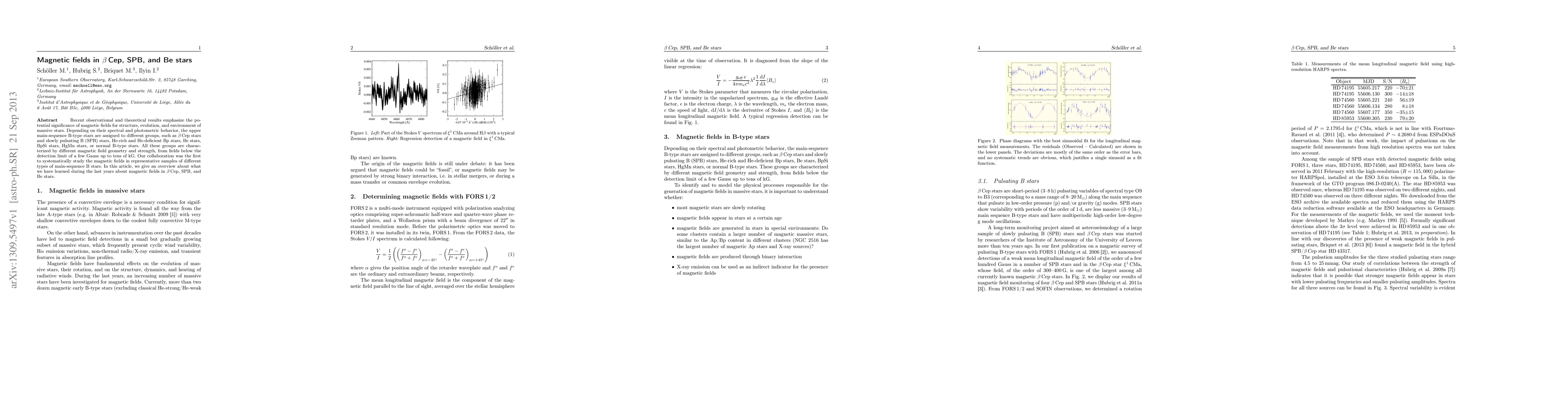 This paper provides an overview of recent findings on magnetic fields in beta Cep, SPB, and Be stars, highlighting their distinct magnetic field geometries and strengths, and discussing their implications for the structure, evolution, and environment of massive upper main-sequence B-type stars. The research underscores the importance of magnetic fields in understanding these stellar groups.