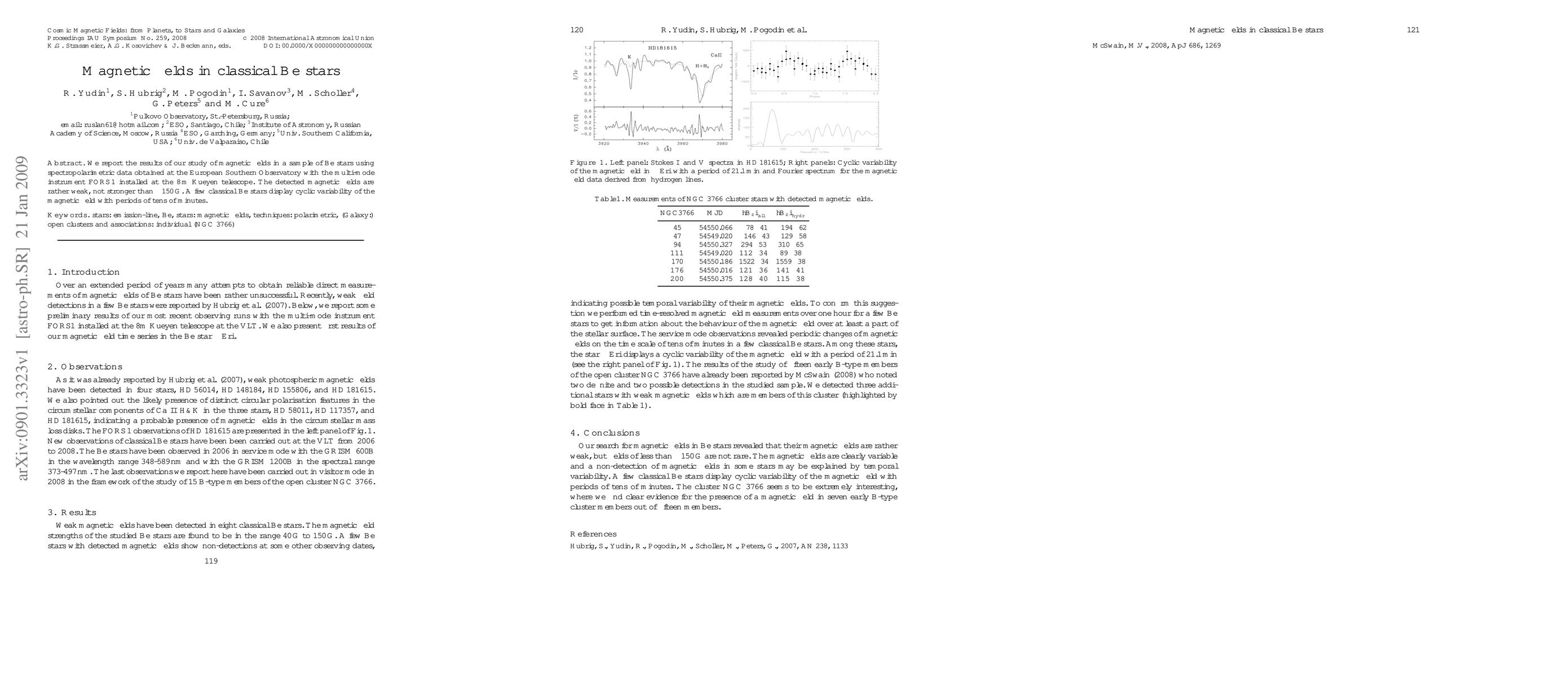Magnetic fields in Be stars were found to be relatively weak, with a few displaying cyclic variability over minutes.