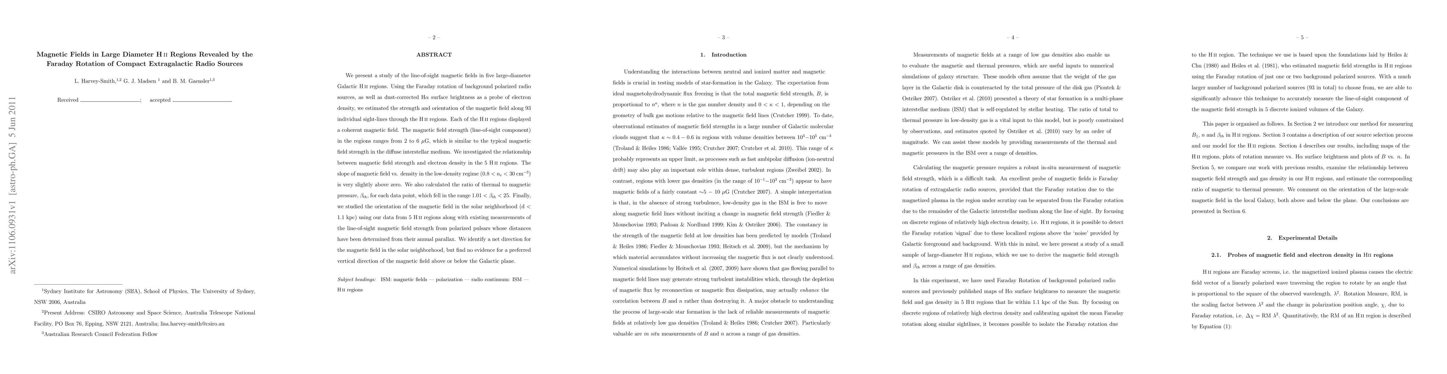 This study investigates the magnetic fields in five large-diameter Galactic HII regions using Faraday rotation of polarized radio sources, revealing coherent magnetic fields ranging from 2 to 6 microgauss. The analysis shows a slight positive correlation between magnetic field strength and electron density in the low-density regime.