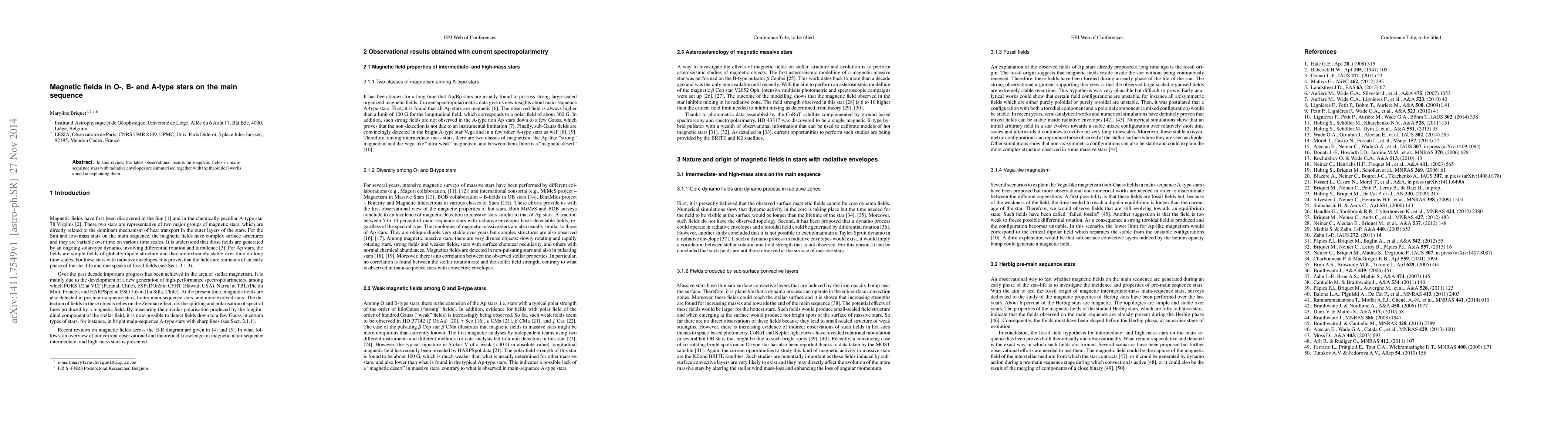 In this review, the latest observational results on magnetic fields in main-sequence stars with radiative envelopes are summarised together with the theoretical works aimed at explaining them.