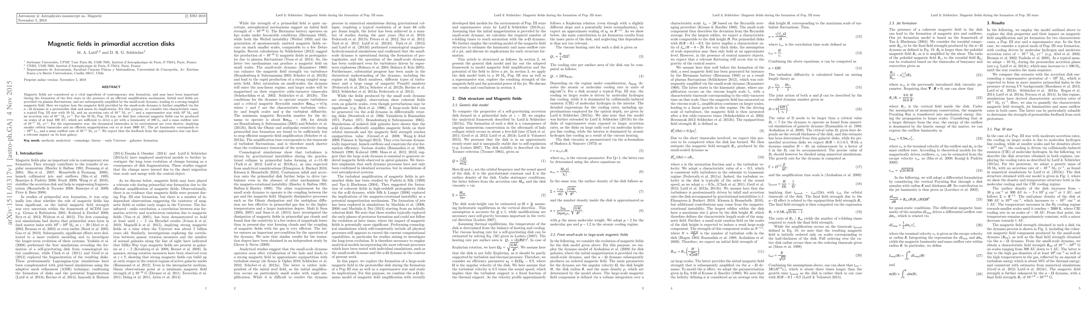 Research finds that magnetic fields in primordial accretion disks can amplify to drive jets with significant luminosity and mass outflow rates in both normal and supermassive stars.