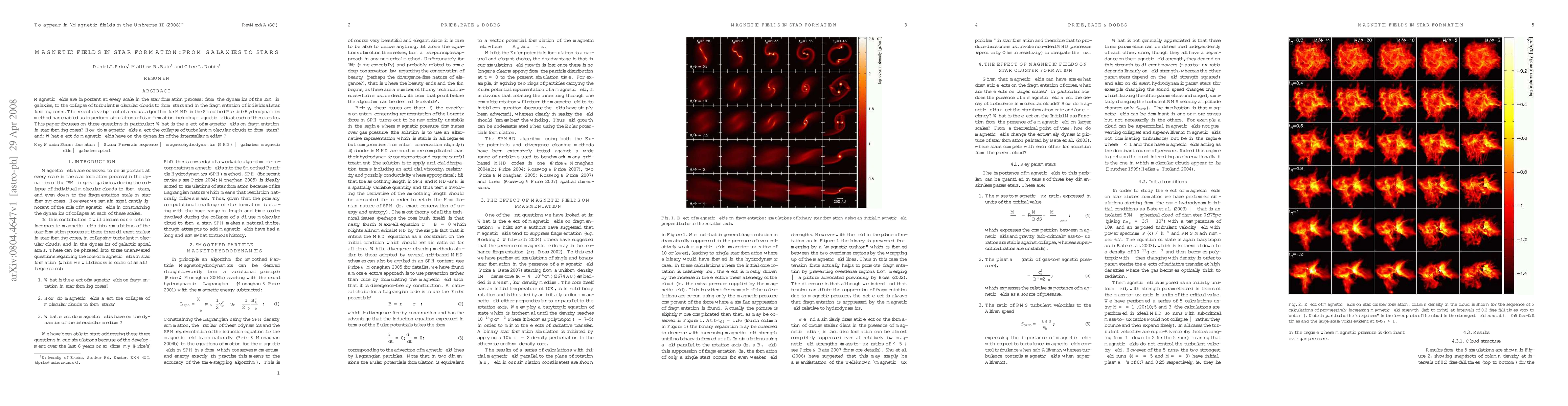 This paper investigates the role of magnetic fields in star formation, from galactic scales to individual stars, using advanced MHD simulations. It examines the impact of magnetic fields on fragmentation in star-forming cores, the collapse of molecular clouds, and the dynamics of the interstellar medium.