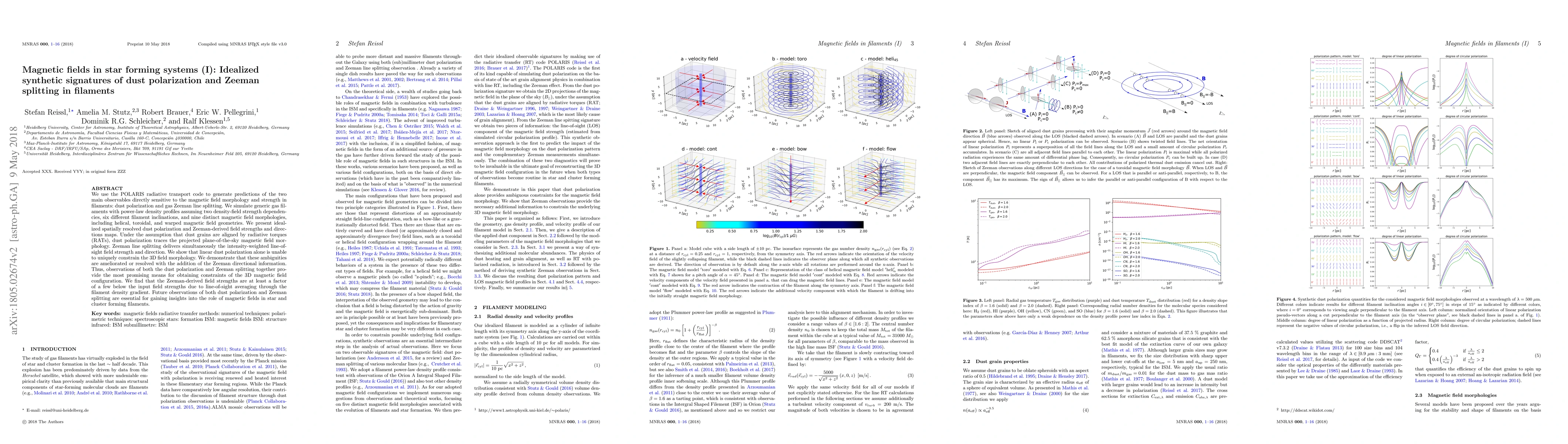 This paper uses the POLARIS radiative transport code to simulate dust polarization and gas Zeeman line splitting in star-forming filaments, revealing that both observations are necessary to accurately determine the three-dimensional magnetic field configuration. The study finds that while dust polarization alone cannot uniquely constrain the 3D field, combining it with Zeeman splitting resolves ambiguities and provides more precise magnetic field measurements.