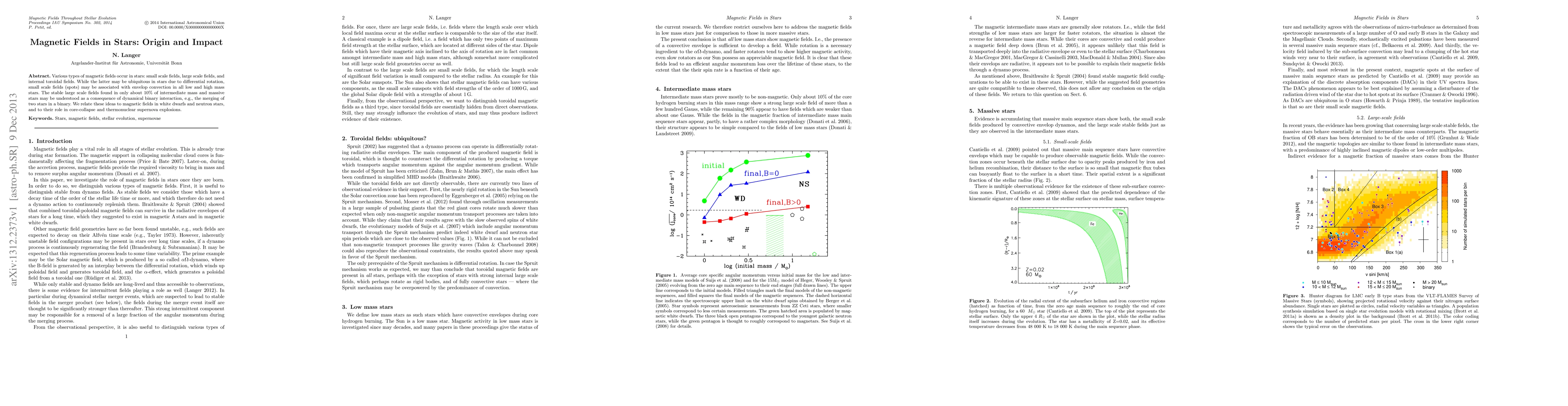 This research explores the origins and impacts of magnetic fields in stars, distinguishing between small scale fields linked to convection and large scale fields resulting from binary star interactions. It also connects these findings to magnetic fields in white dwarfs and neutron stars, and their roles in supernova explosions.