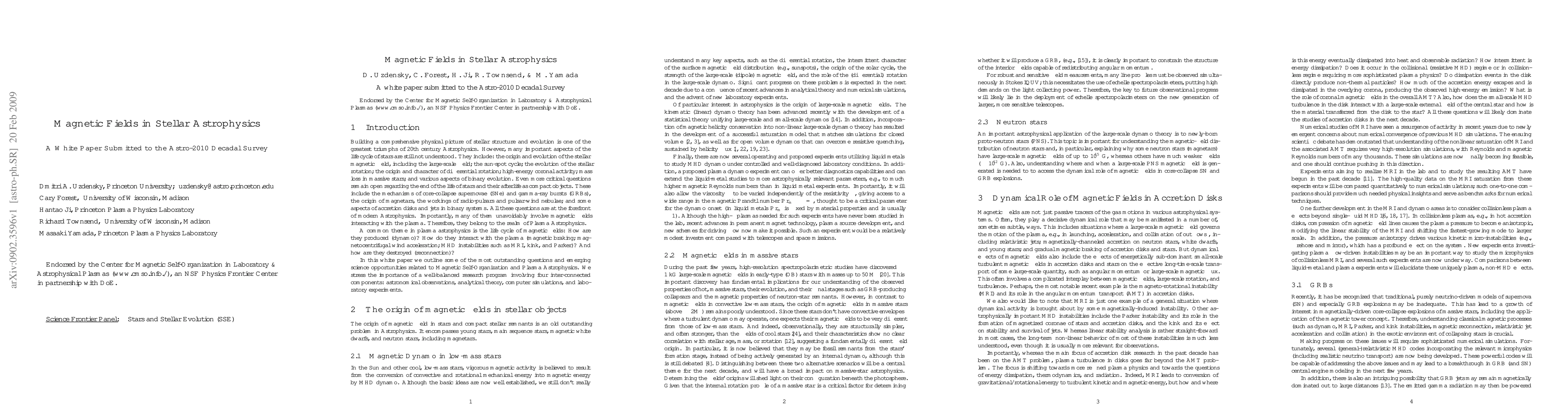 This is a white paper submitted to the Stars and Stellar Evolution (SSE) Science Frontier Panel (SFP) of the NRC's 2010 Astronomy and Astrophysics Decadal Survey. The white paper is endorsed by the NSF Physics Frontier Center for Magnetic Self-Organization in Laboratory and Astrophysical Plasmas (CMSO).