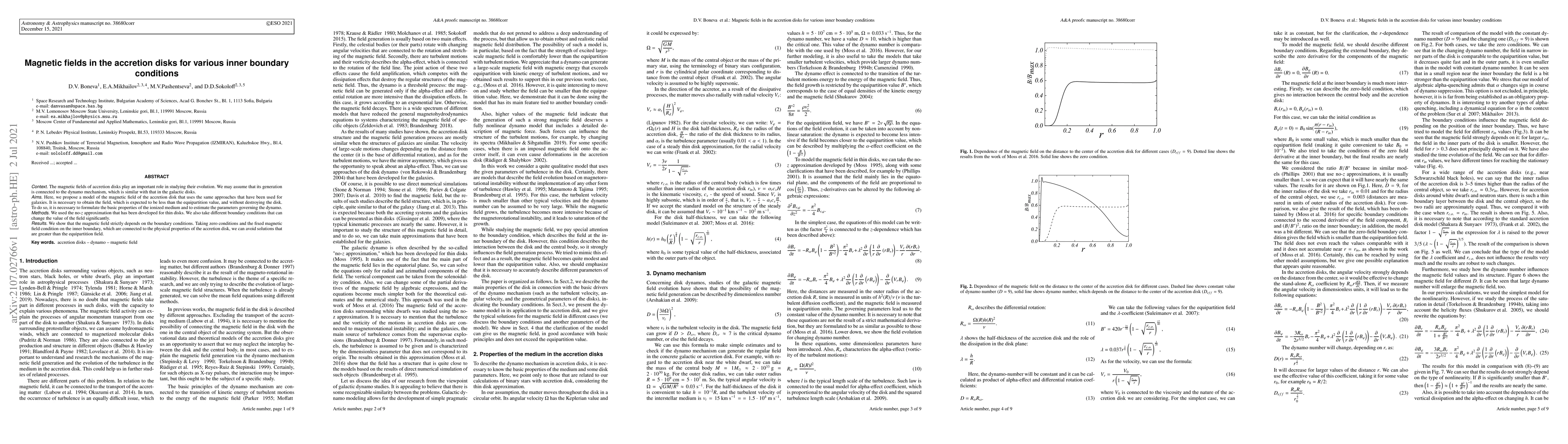 This paper proposes a model for magnetic fields in accretion disks, emphasizing the dynamo mechanism's role in their generation. It explores how different inner boundary conditions significantly affect the magnetic field strength, aiming to avoid values exceeding equipartition without disrupting the disk.