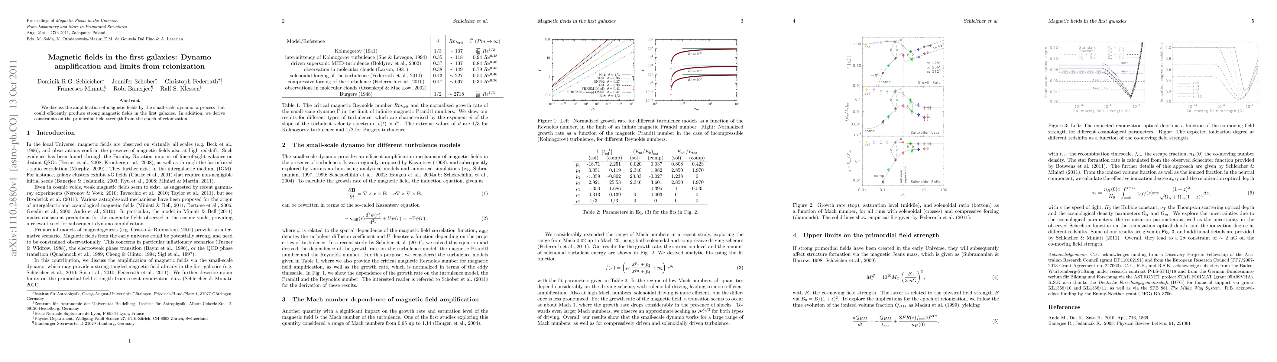 This paper explores how magnetic fields in the first galaxies could be amplified by the small-scale dynamo process, potentially generating strong magnetic fields. It also sets limits on the primordial magnetic field strength based on the epoch of reionization.