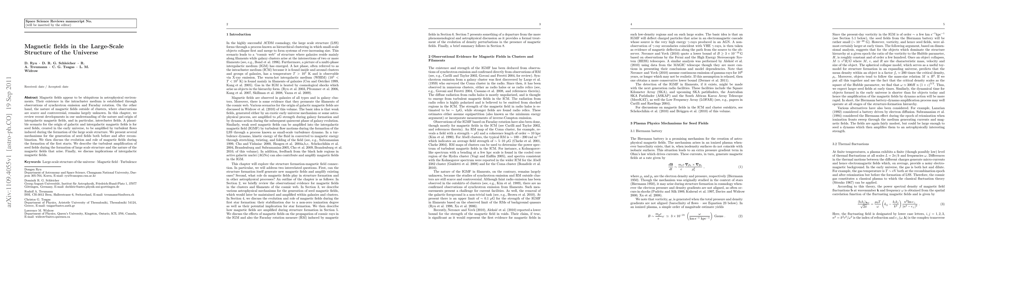 This paper reviews recent advancements in understanding intergalactic magnetic fields, focusing on their nature, origin, and amplification through turbulent flows during the formation of the large-scale structure. It explores mechanisms for generating seed fields and discusses their implications for the early universe and the formation of the first stars.