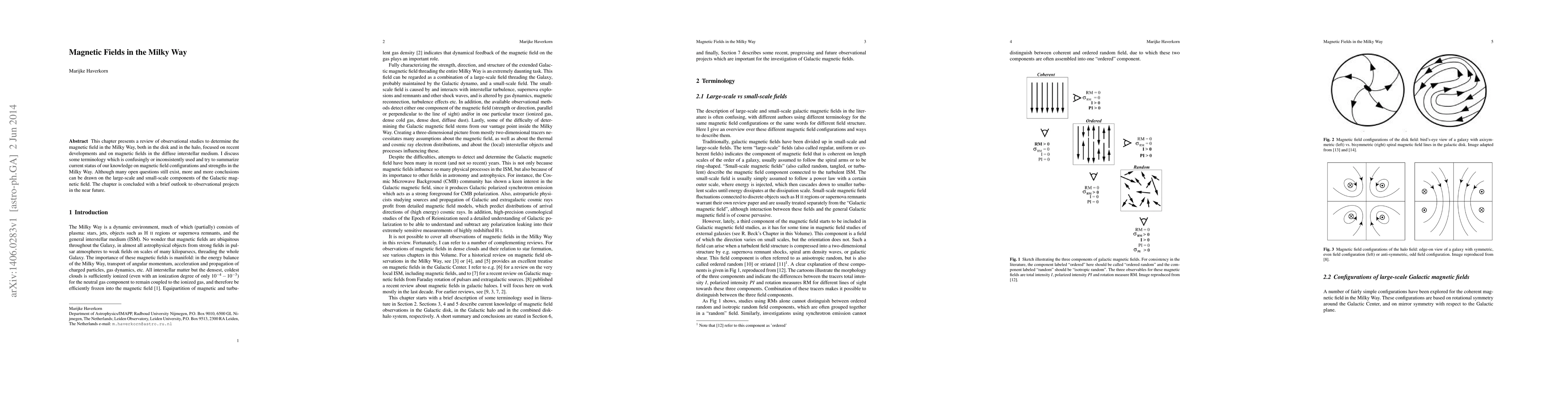This paper reviews recent observational studies on the magnetic fields in the Milky Way's disk and halo, addressing inconsistencies in terminology and summarizing current knowledge on field configurations and strengths. It concludes with an outlook on future observational projects.