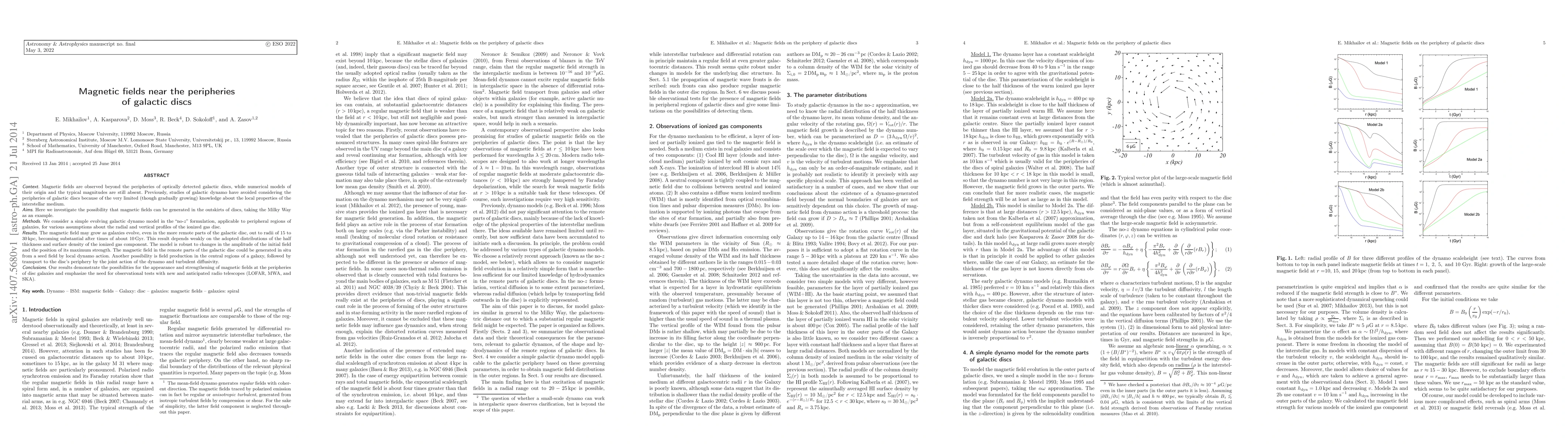Magnetic fields are observed beyond the peripheries of optically detected galactic discs, while numerical models of their origin and the typical magnitudes are still absent. Previously, studies of galactic dynamo have avoided considering the peripheries of galactic discs because of the very limited (though gradually growing) knowledge about the local properties of the interstellar medium. Here we investigate the possibility that magnetic fields can be generated in the outskirts of discs, taking the Milky Way as an example. We consider a simple evolving galactic dynamo model in the "no-z" formulation, applicable to peripheral regions of galaxies, for various assumptions about the radial and vertical profiles of the ionized gas disc. The magnetic field may grow as galaxies evolve, even in the more remote parts of the galactic disc, out to radii of 15 to 30 kpc, becoming substantial after times of about 10 Gyr. This result depends weakly on the adopted distributions of the half thickness and surface density of the ionized gas component. The model is robust to changes in the amplitude of the initial field and the position of its maximum strength. The magnetic field in the remote parts of the galactic disc could be generated in situ from a seed field by local dynamo action. Another possibility is field production in the central regions of a galaxy, followed by transport to the disc's periphery by the joint action of the dynamo and turbulent diffusivity. Our results demonstrate the possibilities for the appearance and strengthening of magnetic fields at the peripheries of disc galaxies and emphasize the need for observational tests with new and anticipated radio telescopes (LOFAR, MWA, and SKA).