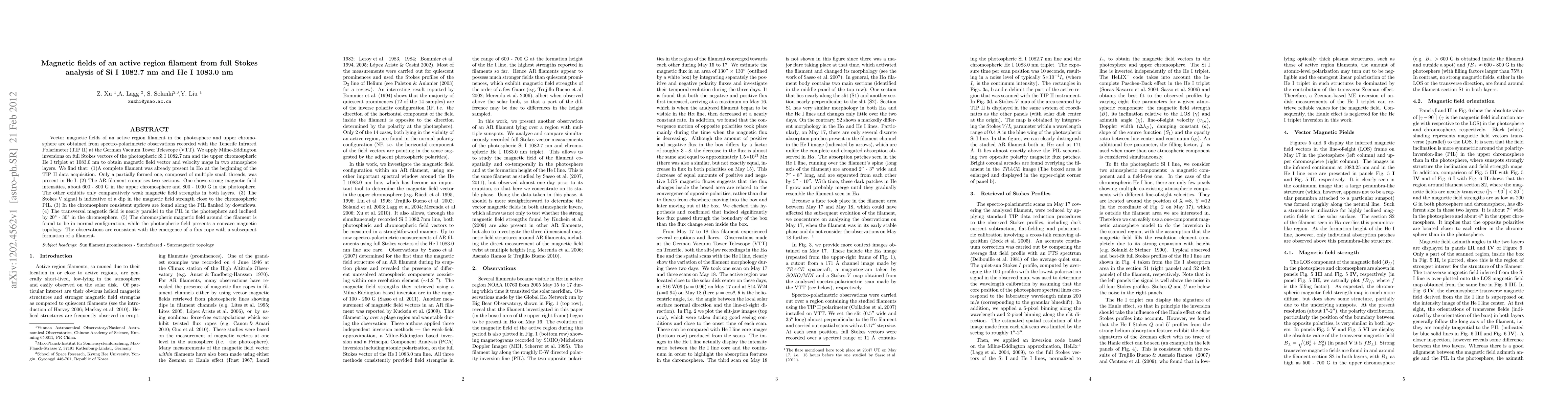Researchers used spectro-polarimetry to map magnetic fields in an active region filament, finding two sections with strong and weak field strengths, consistent with the emergence of a flux rope.