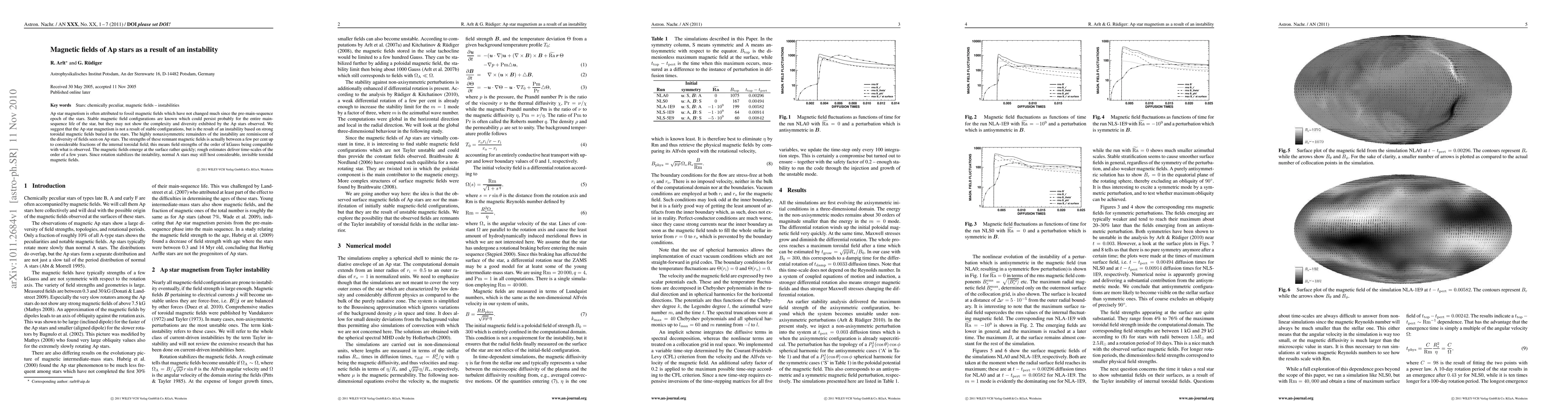 This paper proposes that Ap stars' magnetic fields arise from an instability involving strong toroidal magnetic fields, rather than stable fossil fields. The nonaxisymmetric remnants of this instability explain the observed diversity and field strengths of up to kGauss, emerging at the surface within a few years.