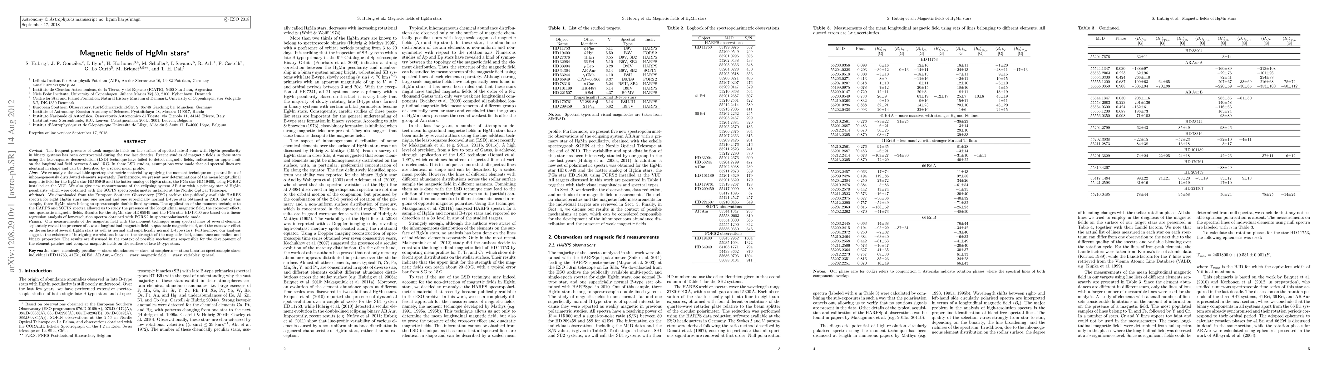 Researchers found weak magnetic fields on HgMn stars using spectropolarimetric analysis, revealing correlations between magnetic field strength, abundance anomalies, and binary properties.