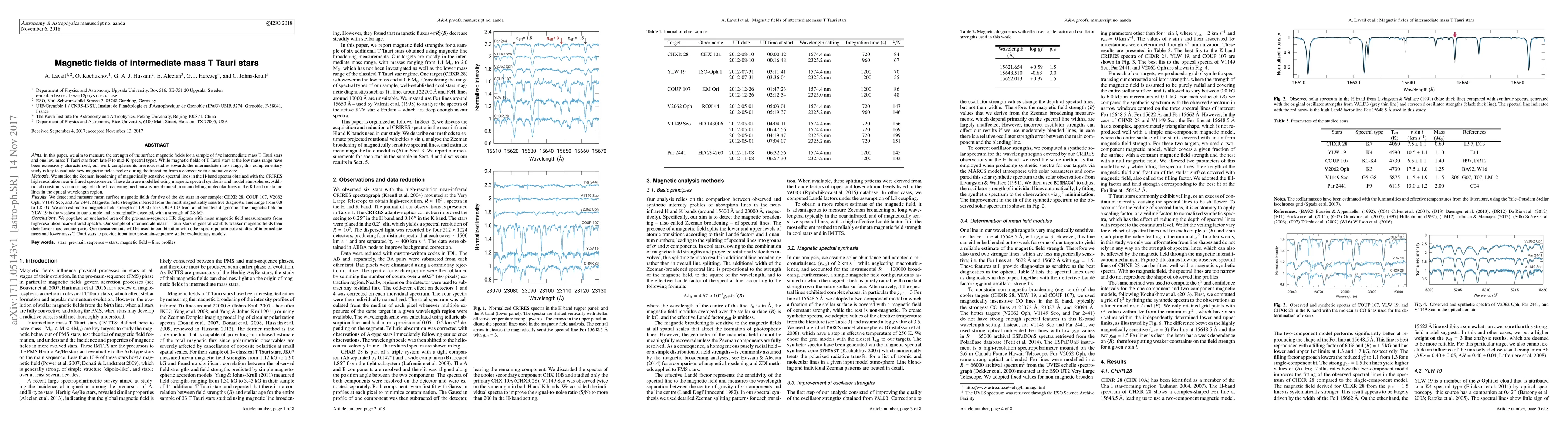 This study measures the surface magnetic fields of six T Tauri stars, focusing on intermediate mass stars, using high-resolution near-infrared spectroscopy. The results show weaker magnetic fields in intermediate mass stars compared to lower mass stars, providing new data for pre-main-sequence stellar evolution models.