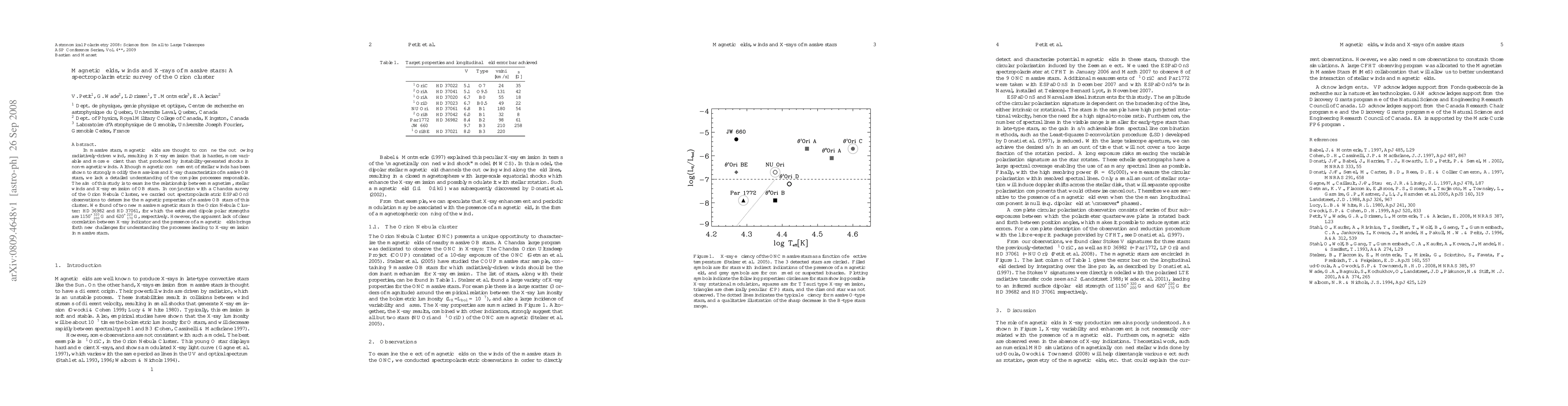 This study investigates the relationship between magnetism, stellar winds, and X-ray emission in massive OB stars using spectropolarimetric observations in the Orion Nebula Cluster. Two new magnetic stars, HD 36982 and HD 37061, were identified, but no clear correlation was found between magnetic fields and X-ray characteristics, posing new challenges for understanding X-ray emission mechanisms in these stars.