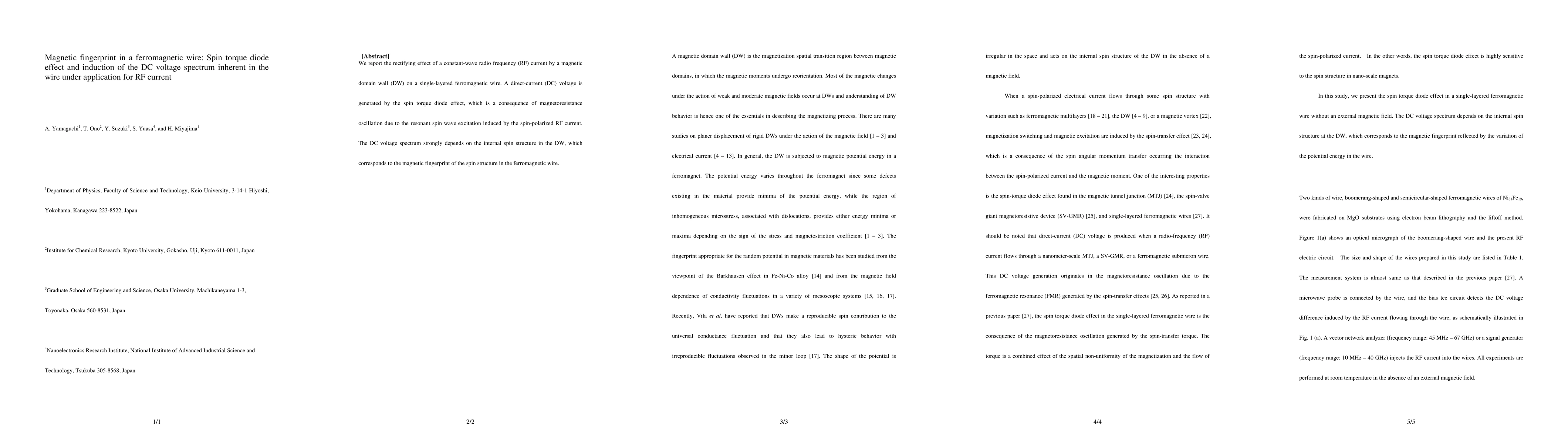 This paper investigates the rectifying effect of a magnetic domain wall in a ferromagnetic wire under RF current, revealing a spin torque diode effect that generates a DC voltage spectrum. The DC voltage's characteristics are directly linked to the magnetic fingerprint of the domain wall's internal spin structure.
