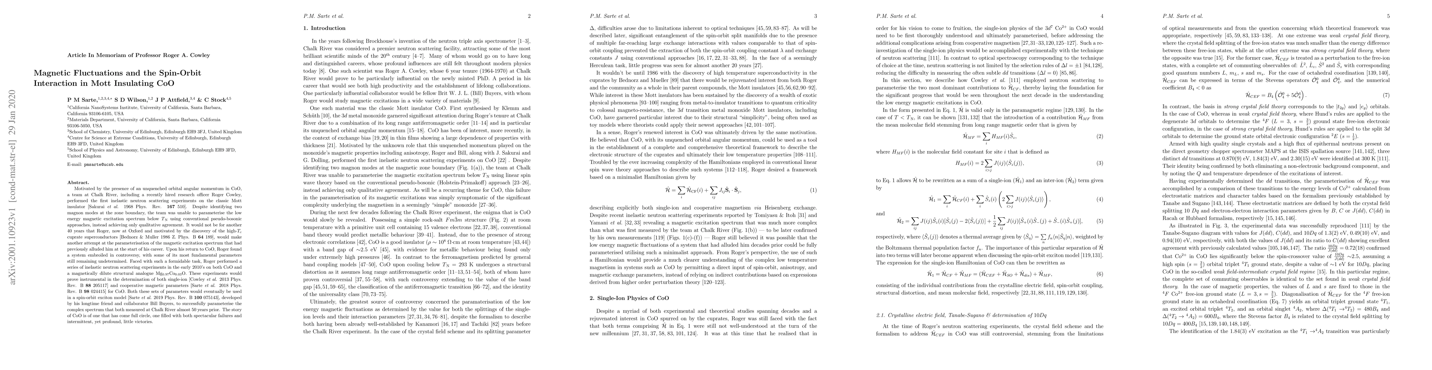 Motivated by the presence of an unquenched orbital angular momentum in CoO, a team at Chalk River, including a recently hired research officer Roger Cowley, performed the first inelastic neutron scattering experiments on the classic Mott insulator [Sakurai $\textit{et al.}$ 1968 Phys. Rev. $\mathbf{167}$ 510]. Despite identifying magnon modes at the zone boundary, the team was unable to parameterise the low energy magnetic excitation spectrum below $T\rm{_{N}}$ using conventional pseudo-bosonic approaches. It would not be for another 40 years that Roger, now at Oxford and motivated by the discovery of the high-$T_{c}$ cuprate superconductors [Bednorz & Muller 1986 Z. Phys. B $\mathbf{64}$ 189], would make another attempt at the parameterisation of the magnetic excitation spectrum that had previously alluded him. Upon his return to CoO, Roger found a system embroiled in controversy, with some of its most fundamental parameters still remaining undetermined. Faced with such a formidable task, Roger performed a series of inelastic neutron scattering experiments in the early 2010's on both CoO and a magnetically dilute structural analogue MgO. These experiments would prove instrumental in the determination of both single-ion [Cowley $\textit{et al.}$ 2013 Phys. Rev. B $\mathbf{88}$ 205117] and cooperative magnetic parameters [Sarte $\textit{et al.}$ 2018 Phys. Rev. B $\mathbf{98}$ 024415] for CoO. Both these sets of parameters would eventually be used in a spin-orbit exciton model [Sarte $\textit{et al.}$ 2019 Phys. Rev. B $\mathbf{100}$ 075143], developed by his longtime friend and collaborator Bill Buyers, to successfully parameterise the complex spectrum that both measured at Chalk River almost 50 years prior. The story of CoO is of one that has come full circle, one filled with both spectacular failures and intermittent, yet profound, little victories.