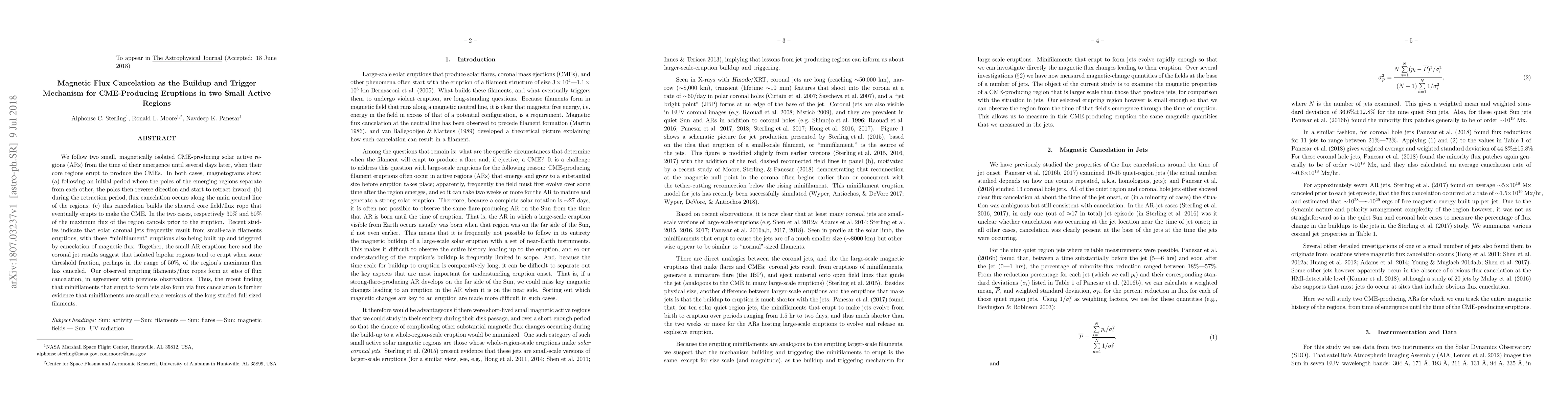 This study investigates the magnetic flux cancelation process in two small solar active regions leading to CME eruptions. It finds that flux cancelation along the neutral line builds the sheared core field/flux rope, triggering the eruption, with 30% and 50% of the maximum flux canceling in the observed regions. This suggests a threshold of around 50% flux cancelation for isolated bipolar regions to erupt.