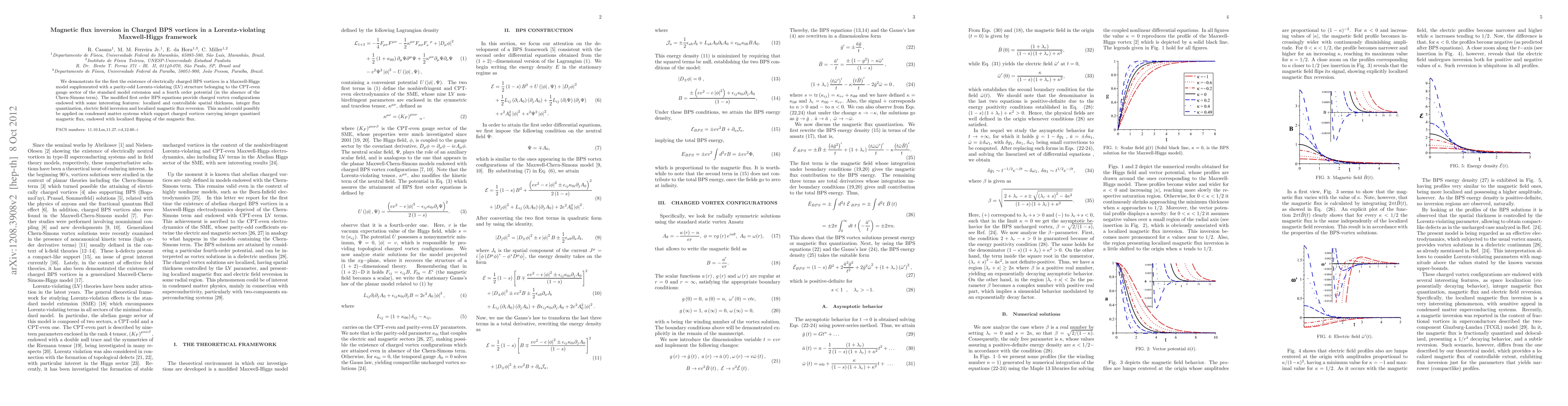 This paper explores electrically charged BPS vortices in a modified Maxwell-Higgs framework with a parity-odd Lorentz-violating term, revealing unique features such as localized magnetic flux reversion and integer flux quantization. These findings could be relevant for condensed matter systems featuring charged vortices.
