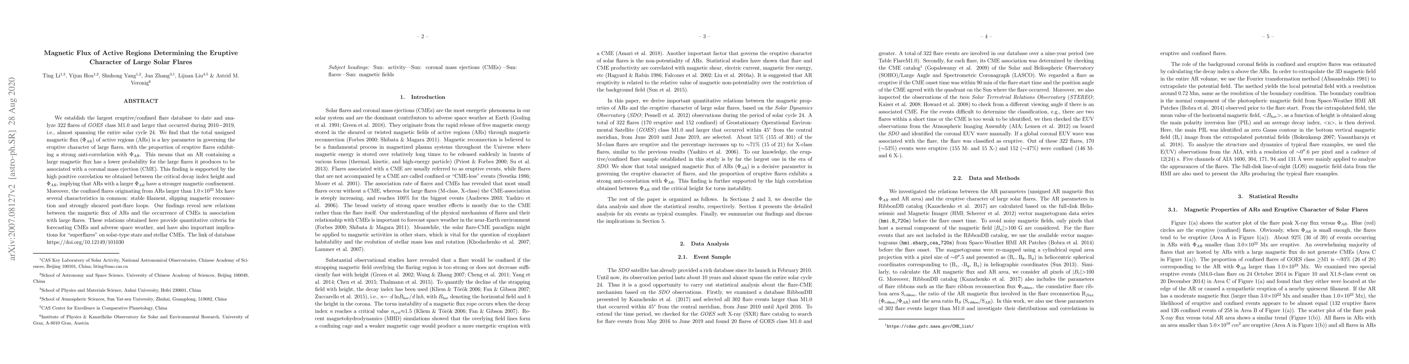 This study analyzes 322 large solar flares from 2010-2019, finding that the total magnetic flux of active regions inversely correlates with the likelihood of flares being eruptive and associated with coronal mass ejections. The research establishes new quantitative criteria for forecasting CMEs and adverse space weather, with implications for stellar flares and CMEs.
