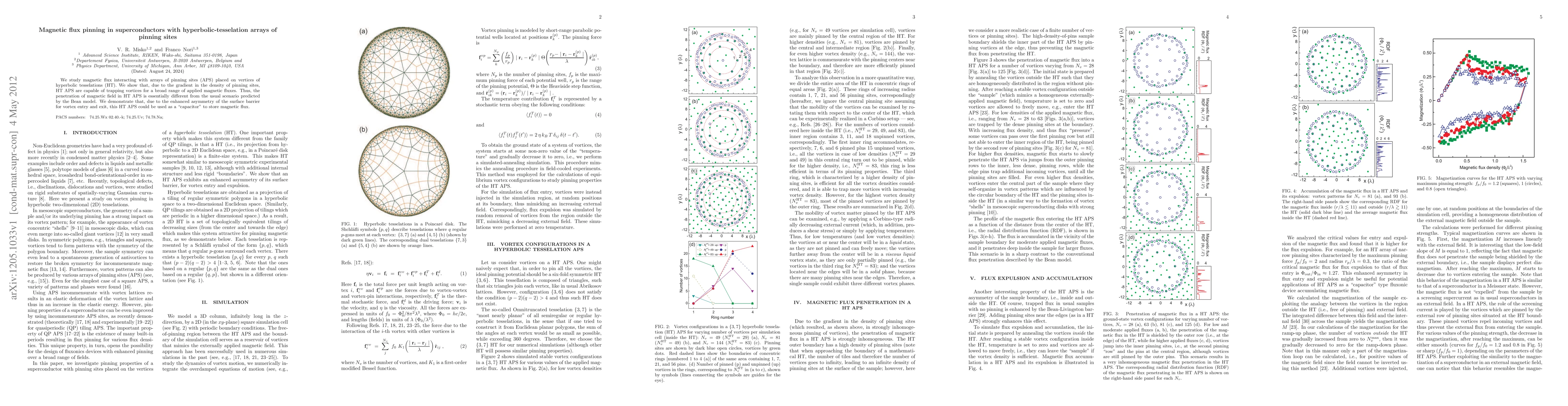 The paper presents a detailed analysis of magnetic flux pinning in superconductors with hyperbolic tesselation arrays of pinning sites, revealing unique vortex trapping and phase behaviors.