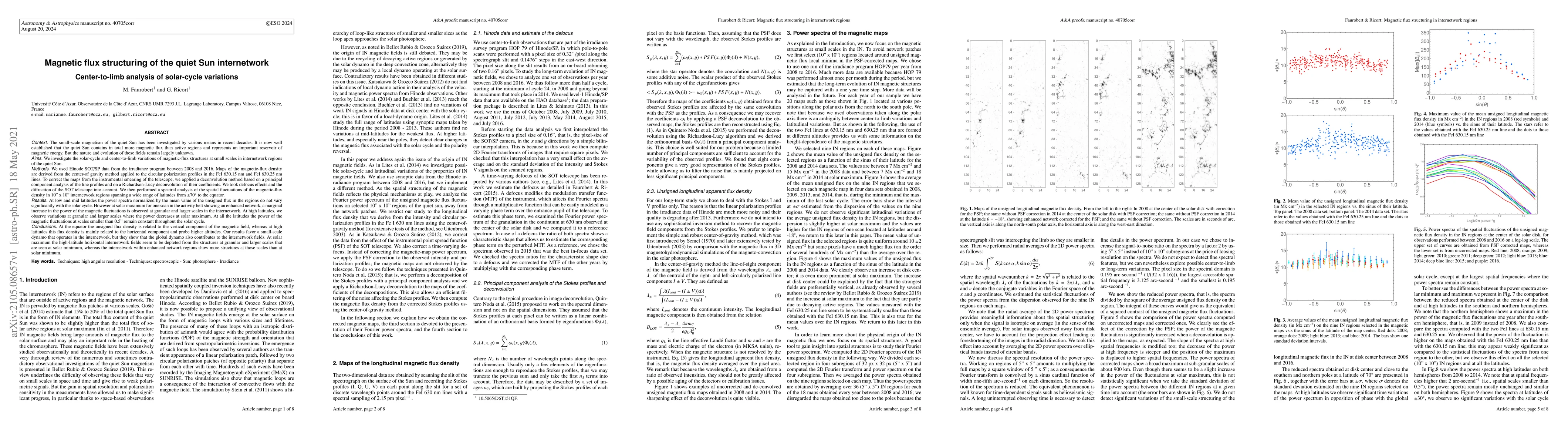 This paper investigates the magnetic flux structuring in the quiet Sun's internetwork over the solar cycle, revealing that small-scale fluctuations remain constant while larger-scale fluctuations exhibit solar cycle variations, suggesting both local and global dynamo contributions.