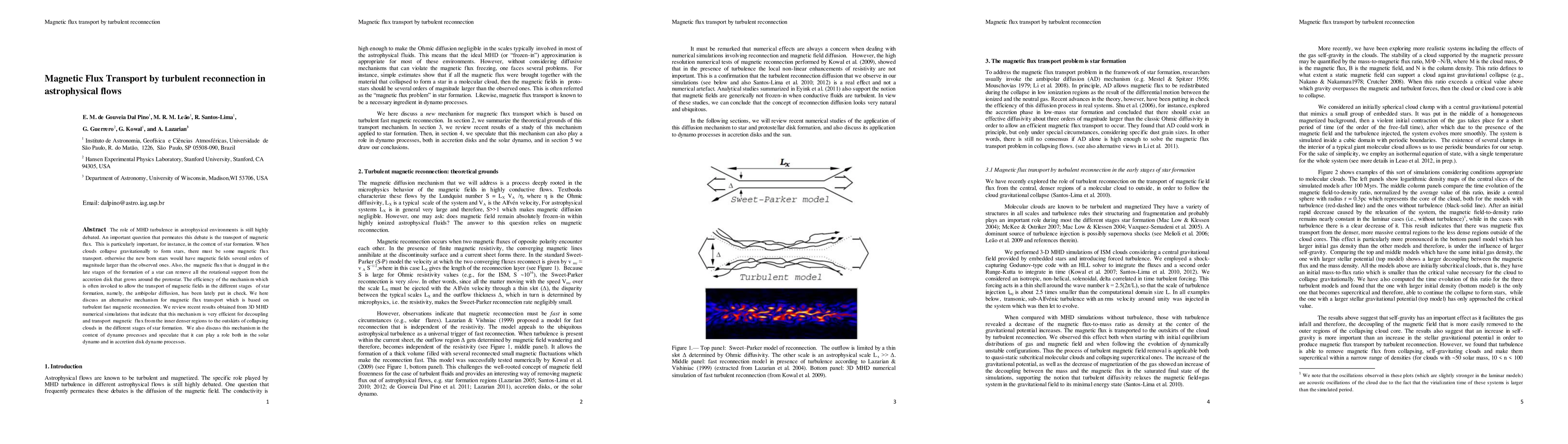 The role of MHD turbulence in astrophysical environments is still highly debated. An important question that permeates this debate is the transport of magnetic flux. This is particularly important, for instance, in the context of star formation. When clouds collapse gravitationally to form stars, there must be some magnetic flux transport. otherwise the new born stars would have magnetic fields several orders of magnitude larger than the observed ones. Also, the magnetic flux that is dragged in the late stages of the formation of a star can remove all the rotational support from the accretion disk that grows around the protostar. The efficiency of the mechanism which is often invoked to allow the transport of magnetic fields in the different stages of star formation, namely, the ambipolar diffusion, has been lately put in check. We here discuss an alternative mechanism for magnetic flux transport which is based on turbulent fast magnetic reconnection. We review recent results obtained from 3D MHD numerical simulations that indicate that this mechanism is very efficient for decoupling and transport magnetic flux from the inner denser regions to the outskirts of collapsing clouds in the different stages of star formation. We also discuss this mechanism in the context of dynamo processes and speculate that it can play a role both in the solar dynamo and in accretion disk dynamo processes.