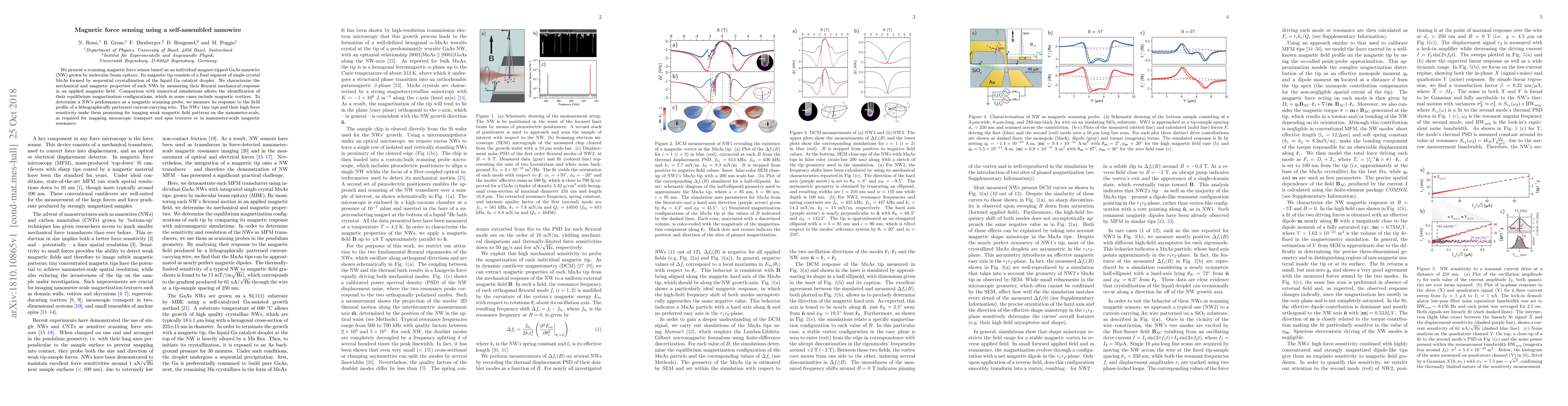 Researchers developed a scanning magnetic force sensor using individual GaAs nanowires with magnetic tips, enabling imaging of weak magnetic field patterns on the nanometer-scale. The tiny sensors' high force sensitivity makes them promising for mapping mesoscopic transport and spin textures.