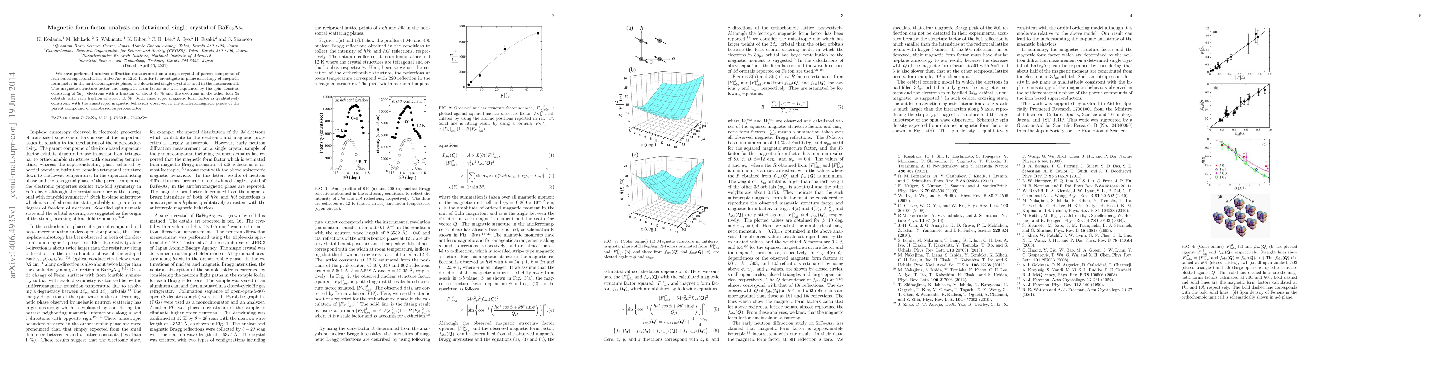 This study analyzes the magnetic form factor in a detwinned single crystal of BaFe$_2$As$_2$ using neutron diffraction at 12 K. The results indicate that the magnetic structure is dominated by $3d_{yz}$ electrons (40%) and other $3d$ orbitals (each ~15%), explaining the observed in-plane anisotropy in the antiferromagnetic phase.