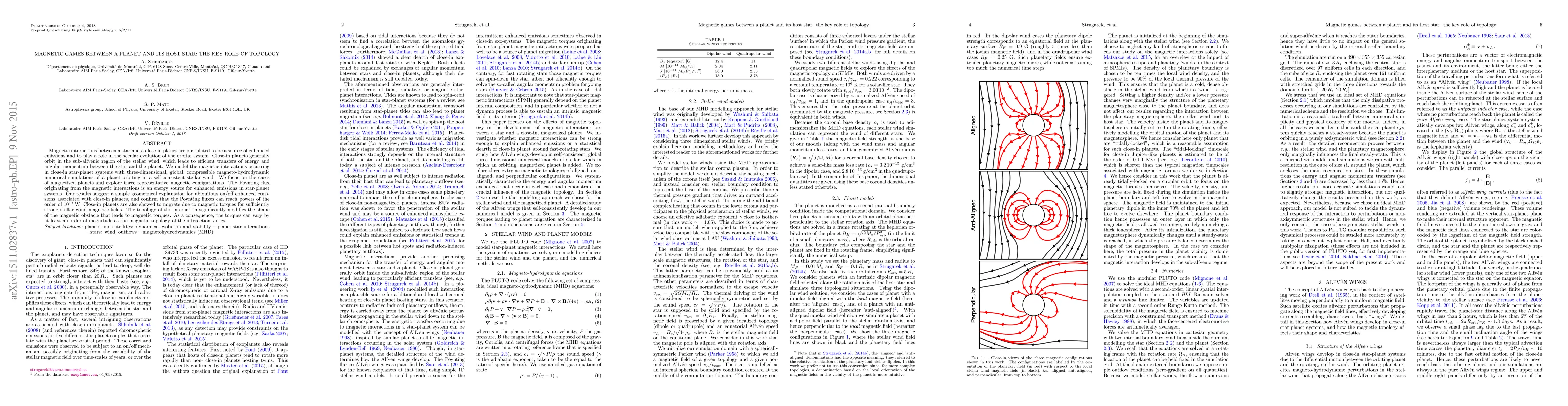 This paper investigates magnetic interactions between close-in planets and their host stars, demonstrating that topology significantly influences these interactions. The study finds that magnetic torques can cause planetary migration and that the Poynting flux from these interactions can reach powers of $10^{19}$ W, affecting the orbital system's evolution.