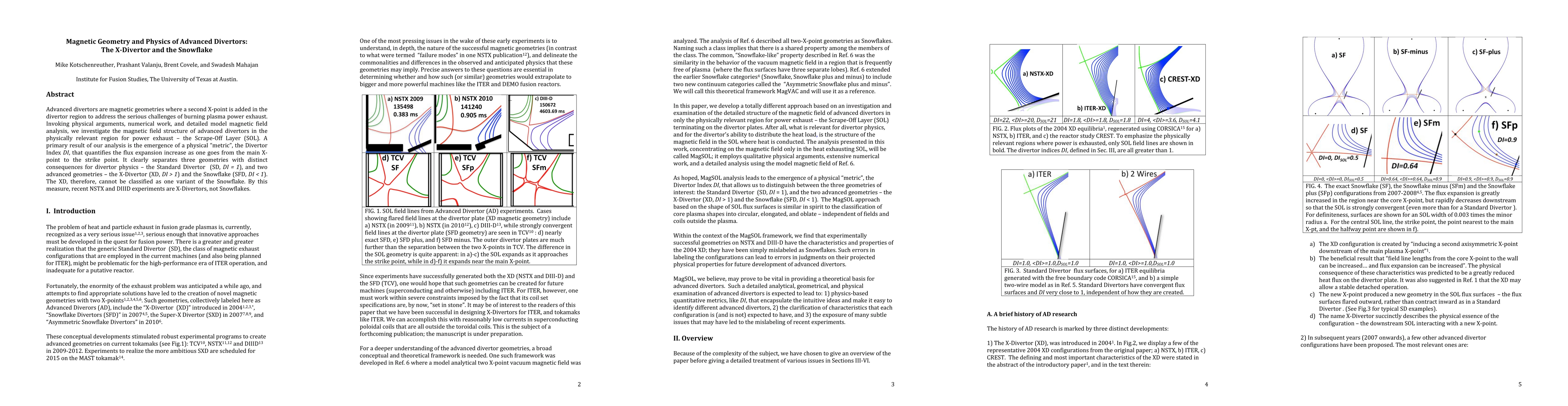 Distinct classification of Standard, X-Divertor, and Snowflake Divertor geometries using the Divertor Index DI, clarifying the differences between X-Divertor and Snowflake configurations.