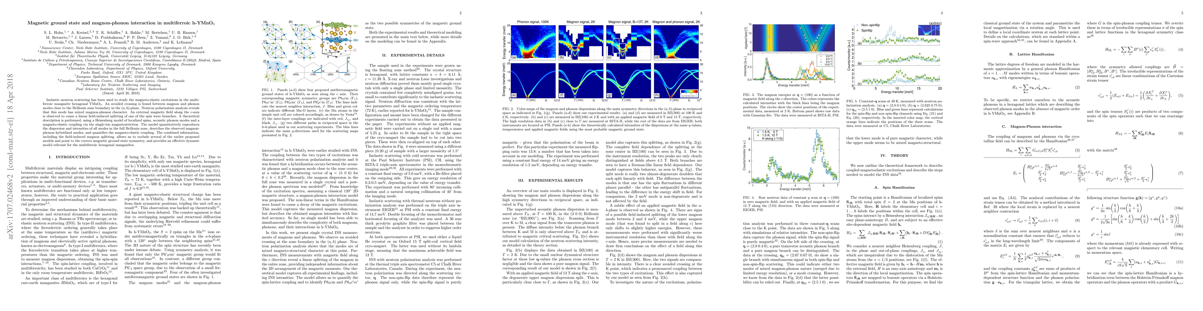 Researchers studied the magnetic ground state and magnon-phonon interaction in multiferroic YMnO3 using inelastic neutron scattering, finding a mixed magnon-phonon mode that splits with an external magnetic field.