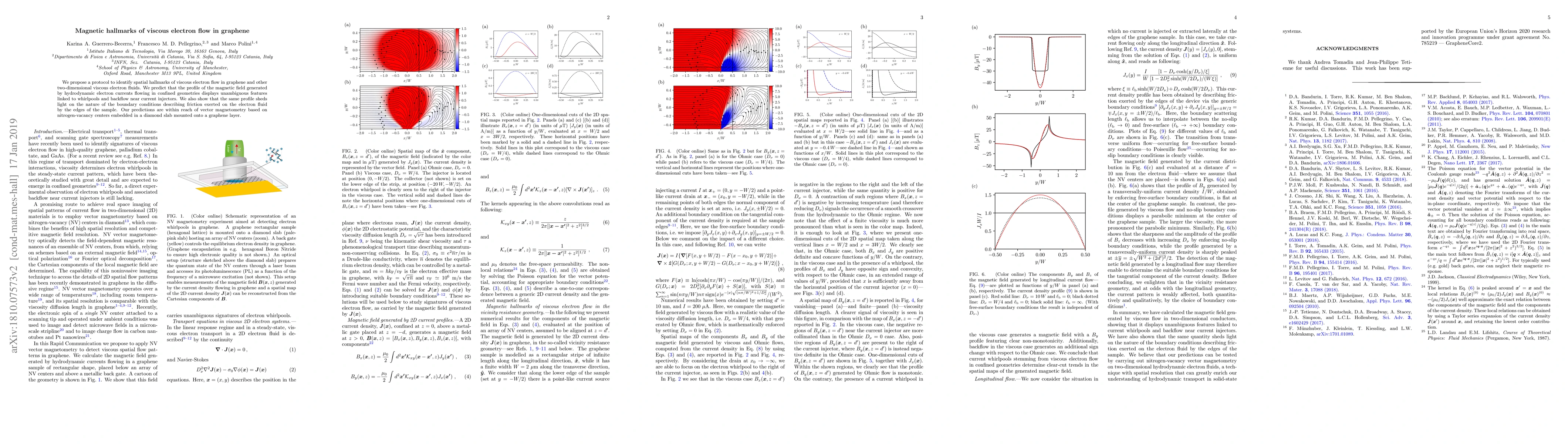 This paper proposes a method to detect spatial signatures of viscous electron flow in graphene using magnetic field profiles generated by hydrodynamic currents, revealing whirlpools and backflow near current injectors. The study also links these magnetic field profiles to the boundary conditions affecting electron friction at sample edges, with potential experimental verification via vector magnetometry.
