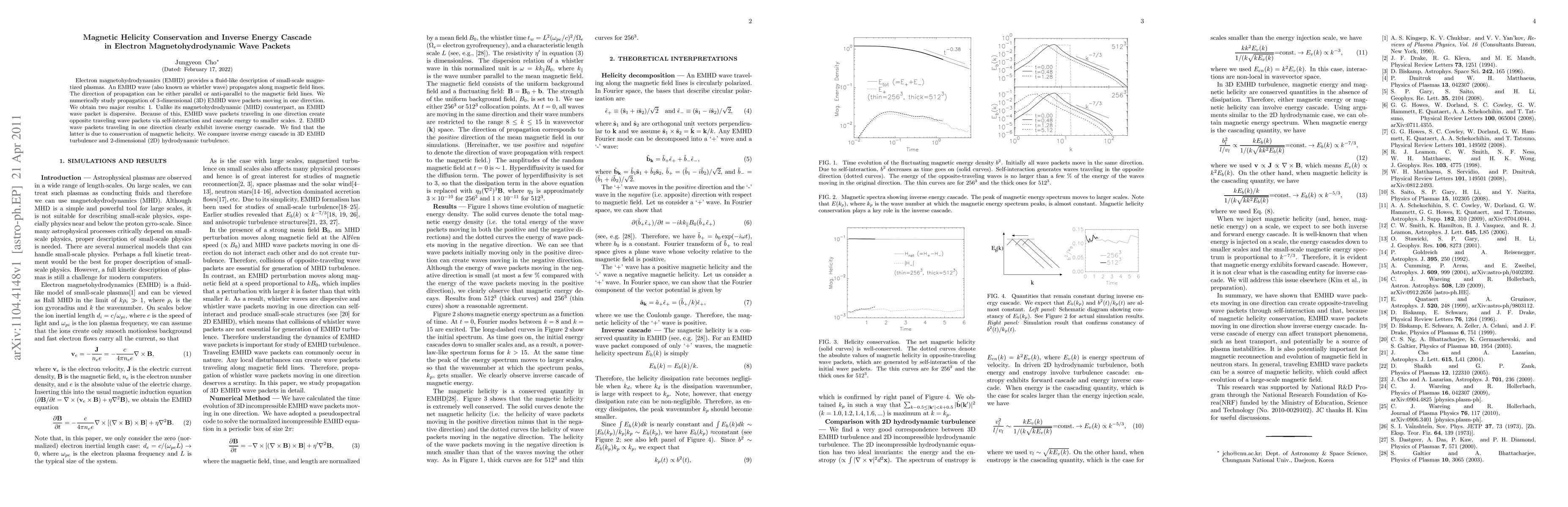 This paper investigates electron magnetohydrodynamics (EMHD) wave packets, revealing that they are dispersive and generate opposite traveling wave packets through self-interaction, leading to an inverse energy cascade. The study finds that this cascade is due to the conservation of magnetic helicity, contrasting with typical magnetohydrodynamic behavior.