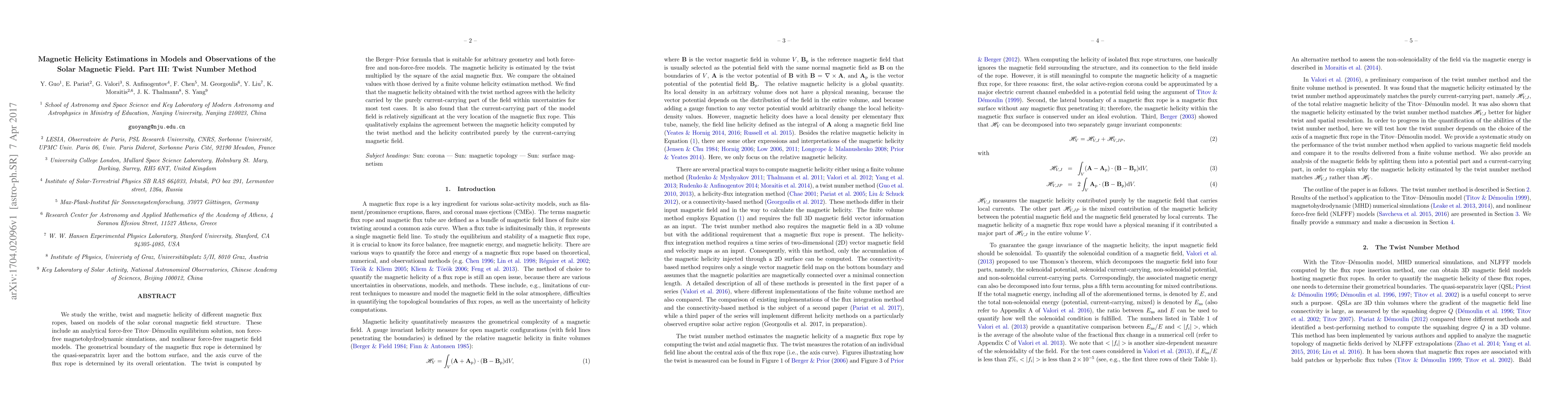 This paper investigates the magnetic helicity in solar coronal magnetic field models using the twist number method, comparing analytical and simulation results. The twist method agrees with finite volume helicity estimations, indicating the current-carrying part of the magnetic field is significant near flux ropes.