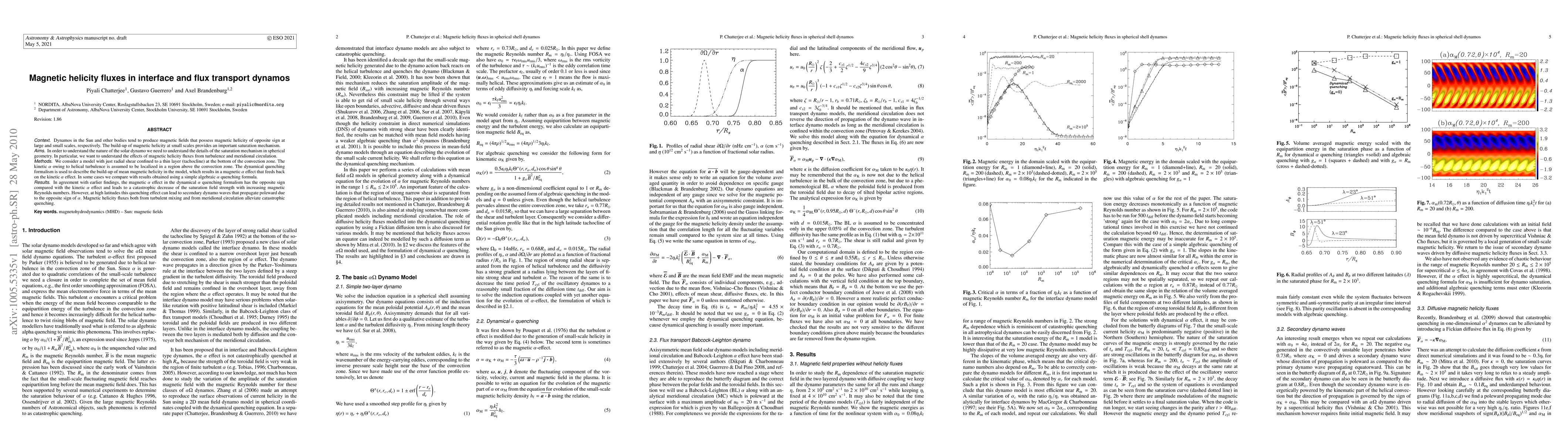 This paper investigates magnetic helicity fluxes in dynamo models, focusing on the saturation mechanism in solar dynamos. It finds that magnetic helicity fluxes from turbulence and meridional circulation mitigate the catastrophic quenching effect, allowing for secondary dynamo waves to propagate poleward at high latitudes.