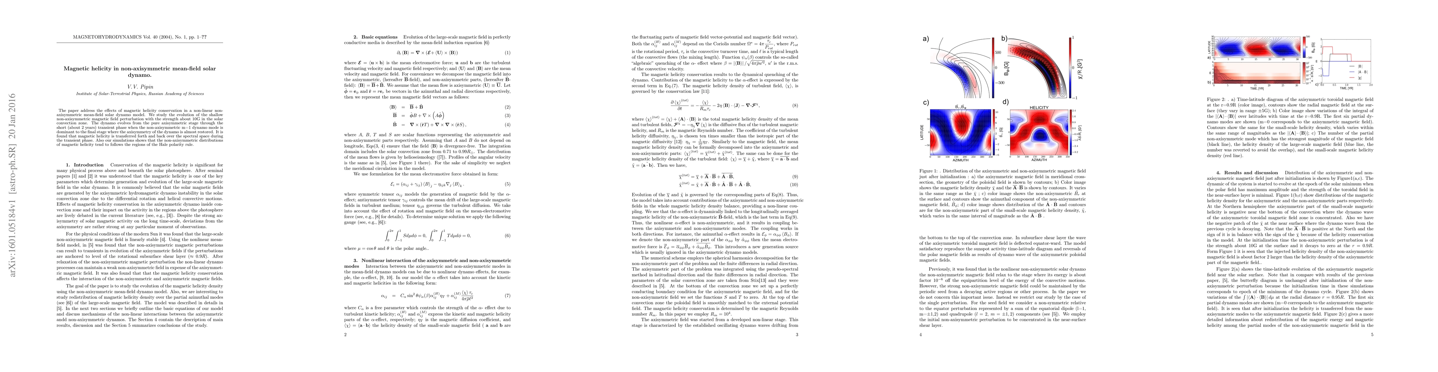 The research used a non-axisymmetric dynamo model to investigate the effects of magnetohelicity conservation