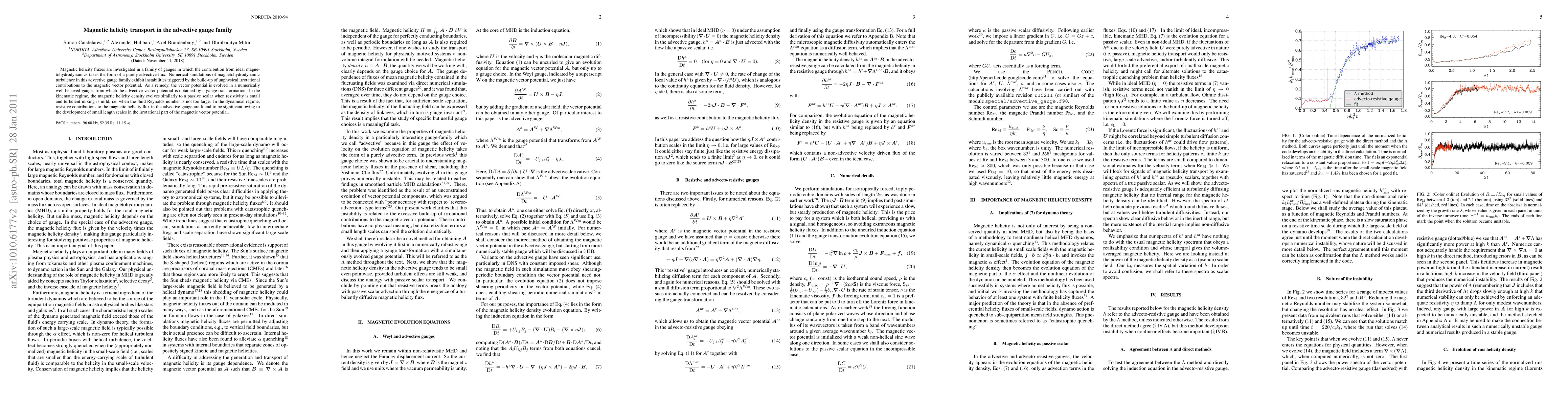 The research investigates magnetic helicity transport in a family of gauges where the ideal MHD contribution to the flux takes a purely advective form. Numerical simulations of MHD turbulence are conducted in this advective gauge family, but they exhibit instabilities due to unphysical irrotational contributions to the magnetic vector potential. To address this, the vector potential is evolved in a numerically stable gauge, and the advective vector potential is derived through a gauge transformation.