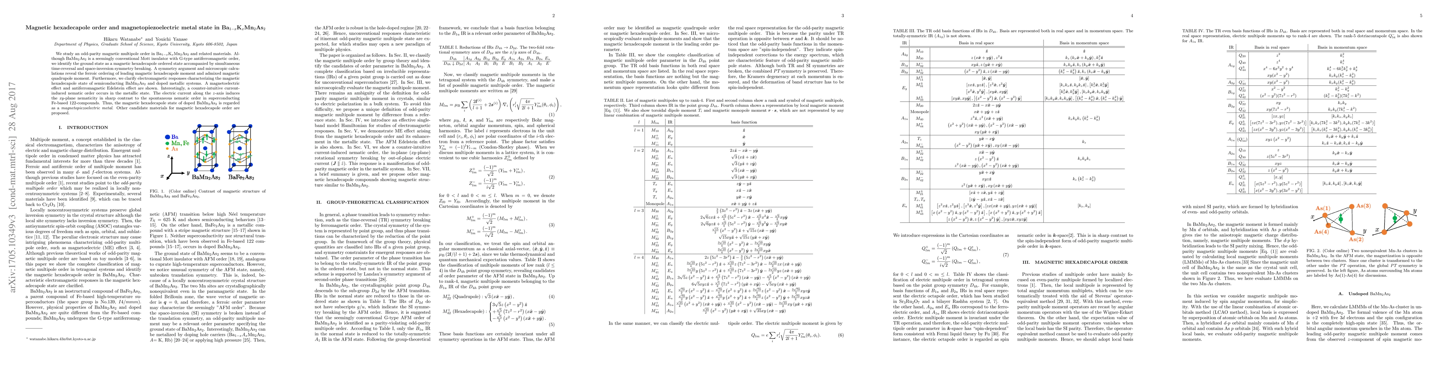 This paper investigates the magnetic hexadecapole order in Ba$_{1-x}$K$_x$Mn$_2$As$_2$, revealing a magnetopiezoelectric metal state characterized by simultaneous symmetry breaking and unusual electromagnetic responses. The study highlights a current-induced nematic order in the metallic state, contrasting with spontaneous nematicity in other superconductors.