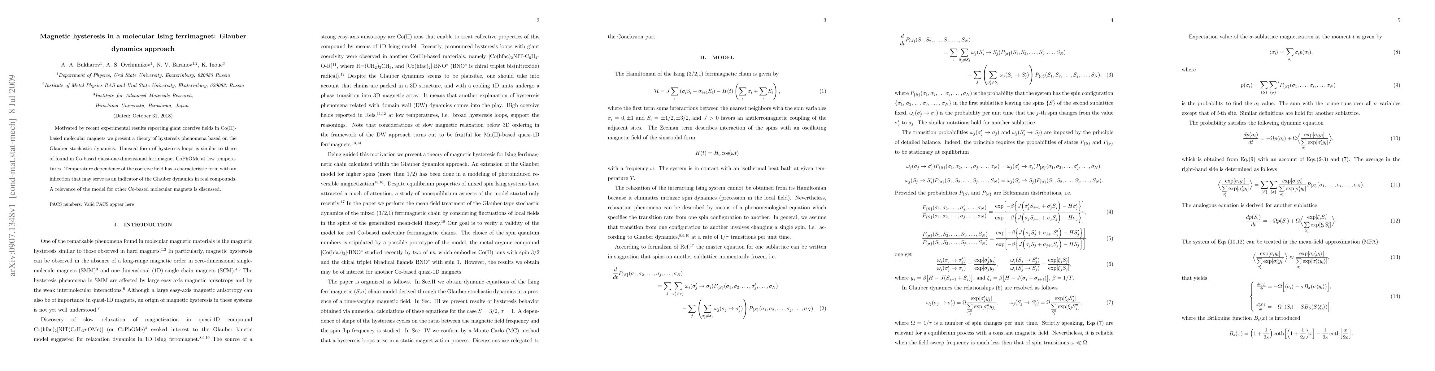 This paper develops a theoretical model using Glauber dynamics to explain the magnetic hysteresis observed in Co(II)-based molecular Ising ferrimagnets, particularly highlighting the unusual hysteresis loops and temperature-dependent coercive field inflections. The model's applicability to other Co-based molecular magnets is also discussed.