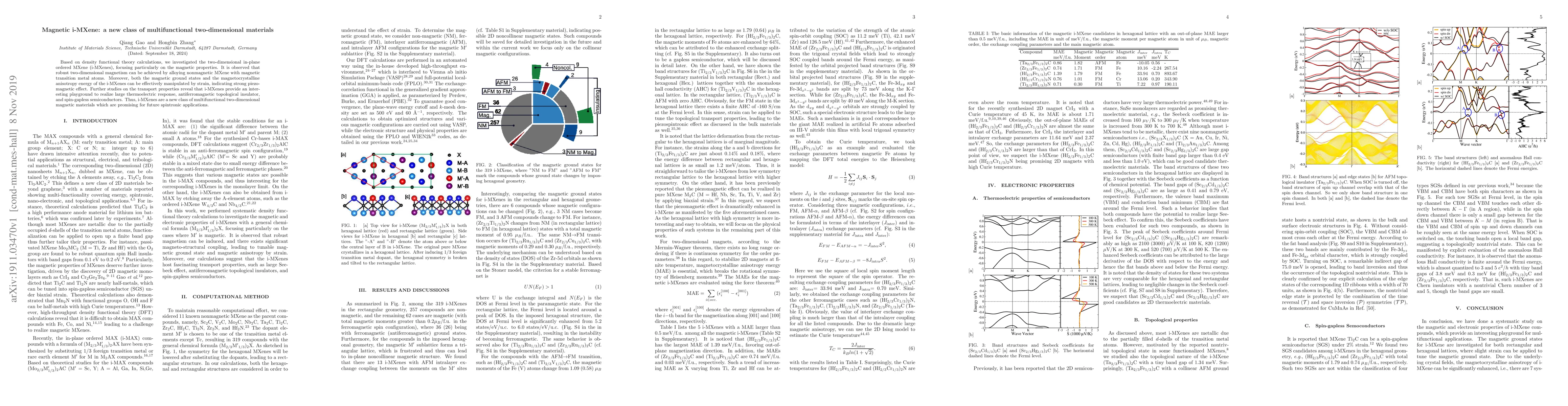 Based on density functional theory calculations, we investigated the two-dimensional in-plane ordered MXene (i-MXenes), focusing particularly on the magnetic properties. It is observed that robust two-dimensional magnetism can be achieved by alloying nonmagnetic MXene with magnetic transition metal atoms. Moreover, both the magnetic ground states and the magnetocrystalline anisotropy energy of the i-MXenes can be effectively manipulated by strain, indicating strong piezomagnetic effect. Further studies on the transport properties reveal that i-MXenes provide an interesting playground to realize large thermoelectric response, antiferromagnetic topological insulator, and spin-gapless semiconductors. Thus, i-MXenes are a new class of multifunctional two-dimensional magnetic materials which are promising for future spintronic applications.