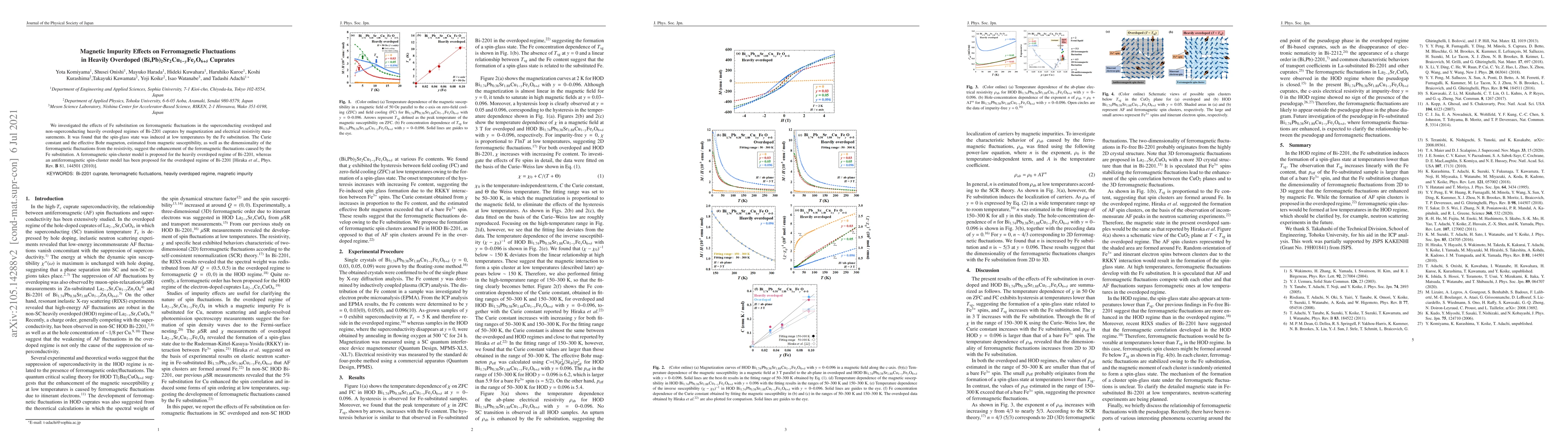 This study investigates the impact of Fe substitution on ferromagnetic fluctuations in overdoped Bi-2201 cuprates, revealing a spin-glass state at low temperatures and enhanced ferromagnetic fluctuations, proposing a ferromagnetic spin-cluster model for heavily overdoped regimes.
