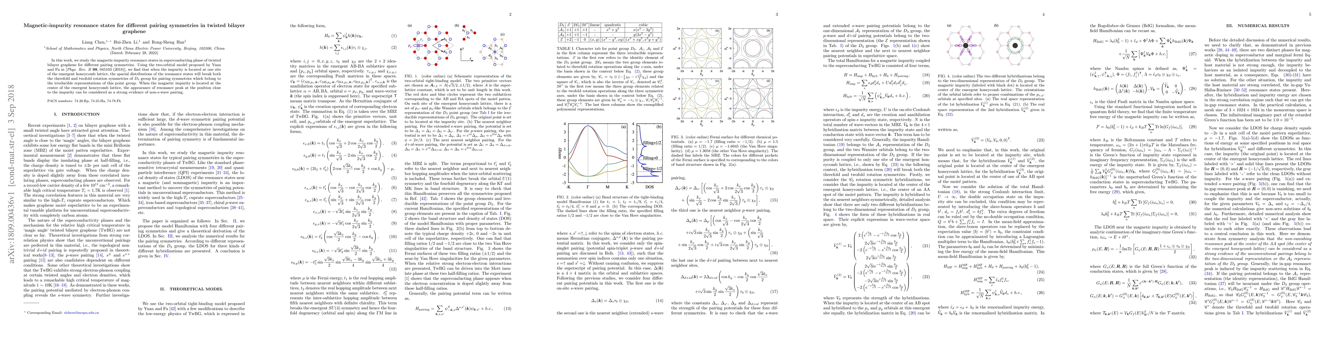 This paper investigates magnetic-impurity resonance states in twisted bilayer graphene's superconducting phase across different pairing symmetries. It reveals that resonance states break rotation symmetries when impurities are at specific lattice sites, providing evidence for non-$s$-wave pairing when impurities are centrally located.