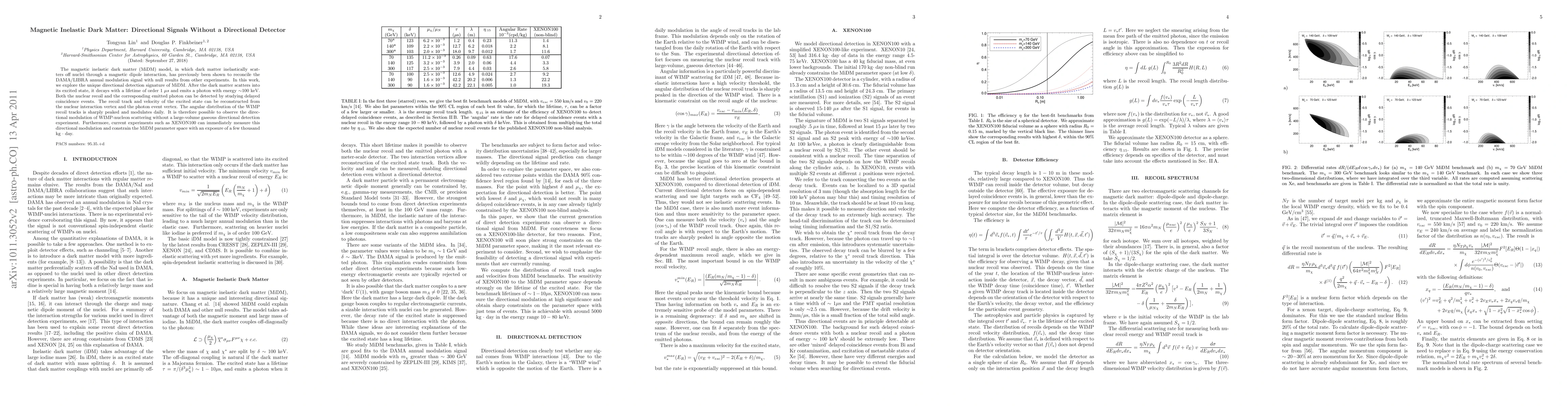 This paper explores the directional detection signature of magnetic inelastic dark matter (MiDM) without requiring a directional detector, showing that delayed coincidence events from nuclear recoils and emitted photons can reconstruct the angular distribution and daily modulation of WIMP-nucleon scattering. Current experiments like XENON100 can measure this modulation to constrain MiDM parameters.