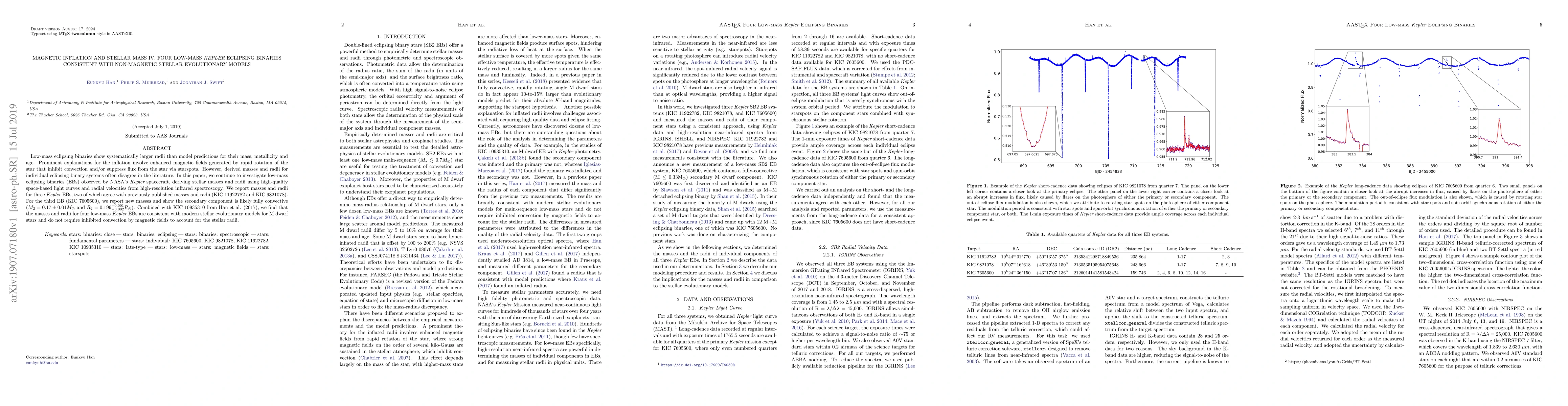 This paper investigates low-mass Kepler eclipsing binaries, finding that four systems' masses and radii align with non-magnetic stellar evolutionary models, challenging the hypothesis that magnetic inflation is necessary to explain their larger radii. The study uses high-quality light curves and spectroscopy to derive accurate stellar parameters.